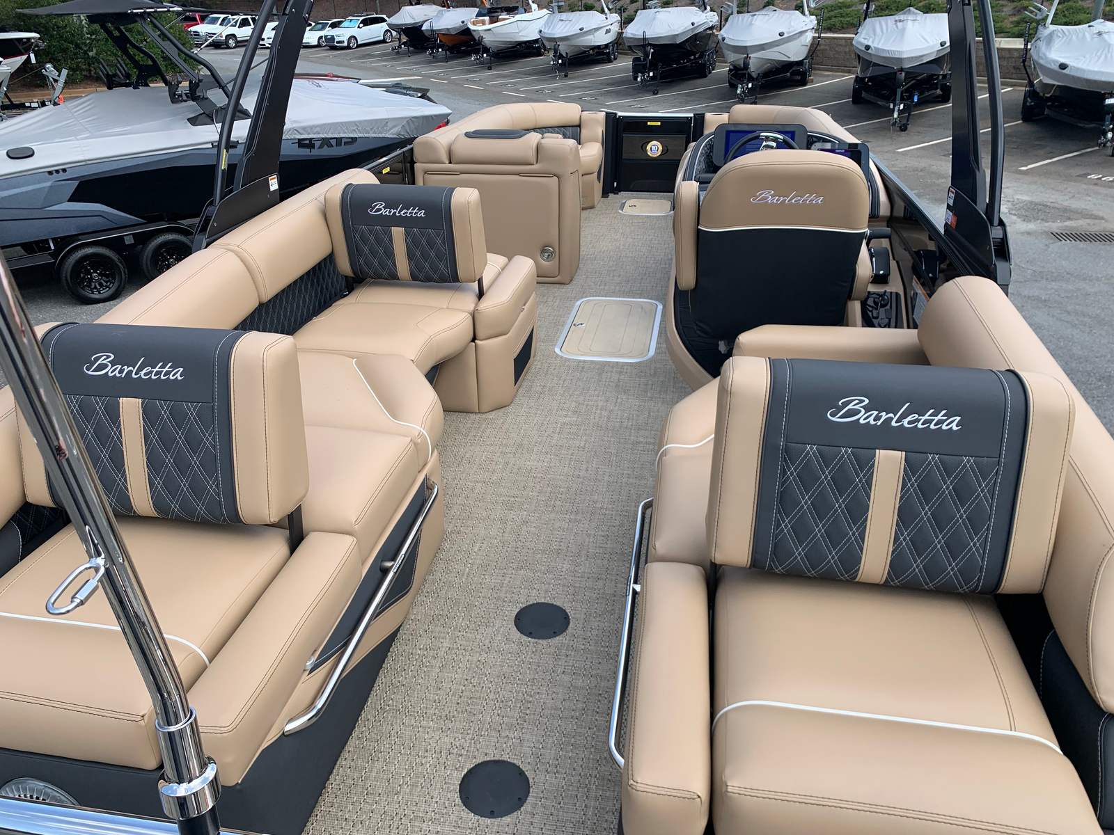 The 2026 Barletta Lusso L25M pontoon boat is a true standout in the world of recreational boating. With its impressive length, powerful Mercury 350L Verado engine, and a host of premium features—including Carmella Tan furniture with Onyx accents, Amore Tan flooring, Sport Bimini canvas, exterior white underdeck and underwater lighting, and a 2-bank battery charger—this new pontoon offers the perfect blend of style, comfort, and performance.If you’re searching for a pontoon boat for sale that delivers unmatched luxury and fun, or a Barletta boat for sale that sets the standard for quality and innovation, the Lusso L25M is your ultimate choice. Discover the joy of owning a boat that’s designed for memorable moments, effortless cruising, and endless enjoyment. Contact your local dealer today to learn more about the Barletta Lusso L25M and start your next adventure on the water.