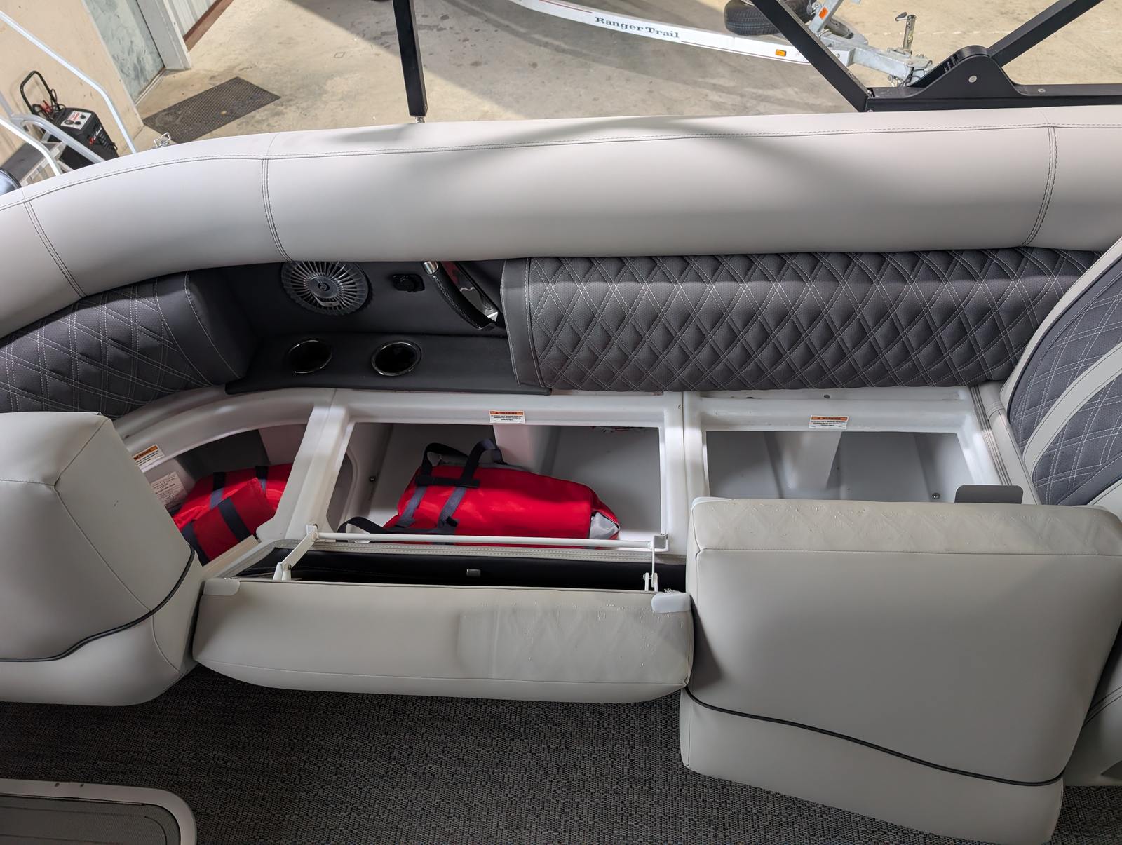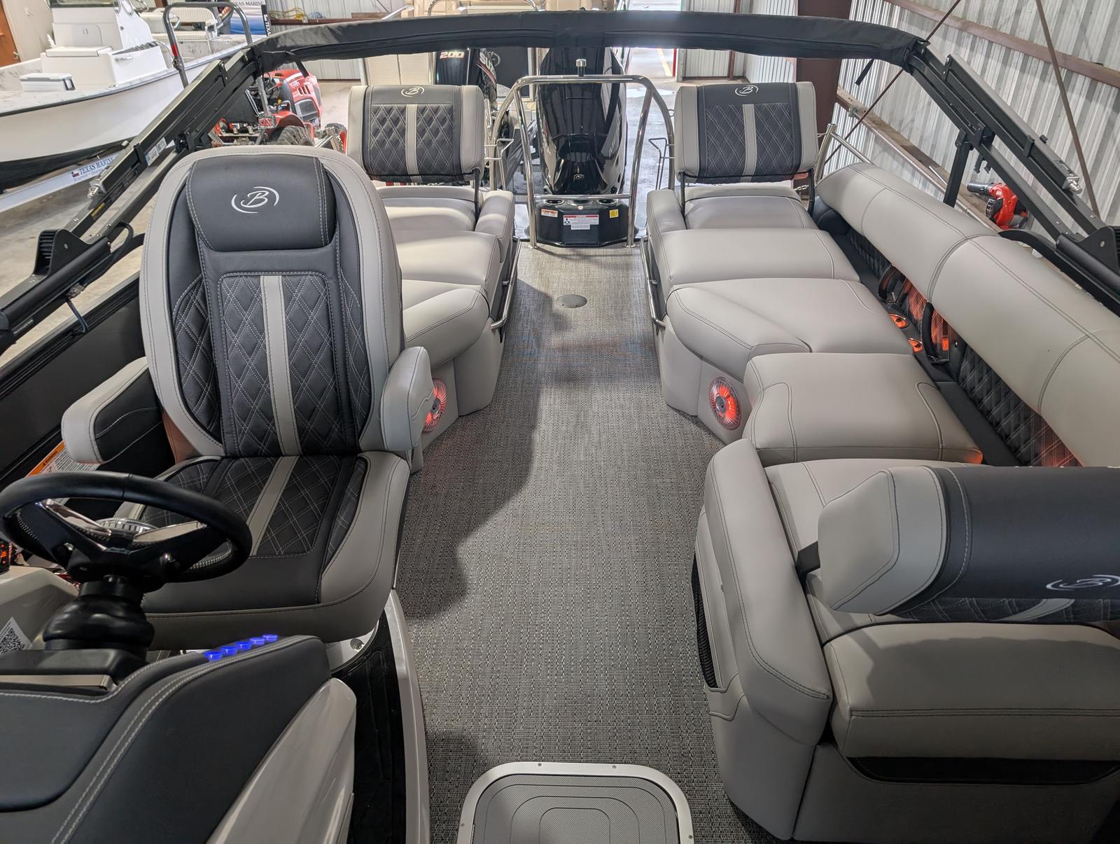 Owning the Barletta Lusso L25M means embracing a lifestyle of fun, relaxation, and adventure. The spacious deck layout provides plenty of room for family and friends to spread out, socialize, and soak up the sun. The high-quality flooring and plush furniture create a welcoming environment for lounging, dining, or celebrating special occasions.The adjustable captain’s chair ensures that every journey is comfortable, whether you’re navigating to a favorite fishing spot or cruising along the shoreline. The table and Yeti-ready cupholders make it easy to enjoy snacks and drinks while you’re anchored or underway, turning every outing into a memorable event.With exterior lighting illuminating the deck and underwater areas, you can extend your boating adventures into the evening, enjoying the tranquil ambiance of moonlit waters. The Lusso L25M’s stylish design and premium finishes make it a standout at any dock or marina, reflecting your taste for quality and sophistication.