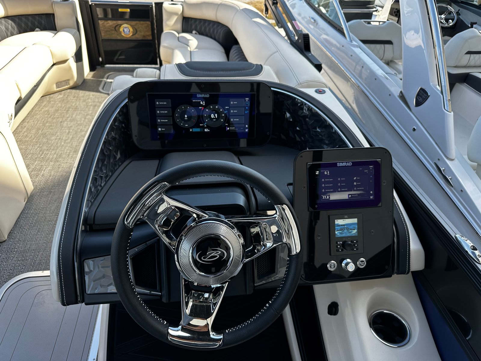 The Barletta Lusso L25M shines in a variety of settings, making it a versatile choice for any boating enthusiast. Picture yourself hosting a family picnic on the water, with plenty of space for kids to play and adults to relax. Imagine gathering with friends for an evening cruise, the white underdeck and underwater lighting setting the perfect mood as you glide across the water. For those who love watersports, the powerful 350-horsepower engine provides ample thrust for tubing, wakeboarding, or skiing.This pontoon boat is also ideal for romantic getaways, offering a private and luxurious escape from the everyday. The combination of comfort, style, and performance makes the Lusso L25M a top choice for anyone seeking a premium boating experience.