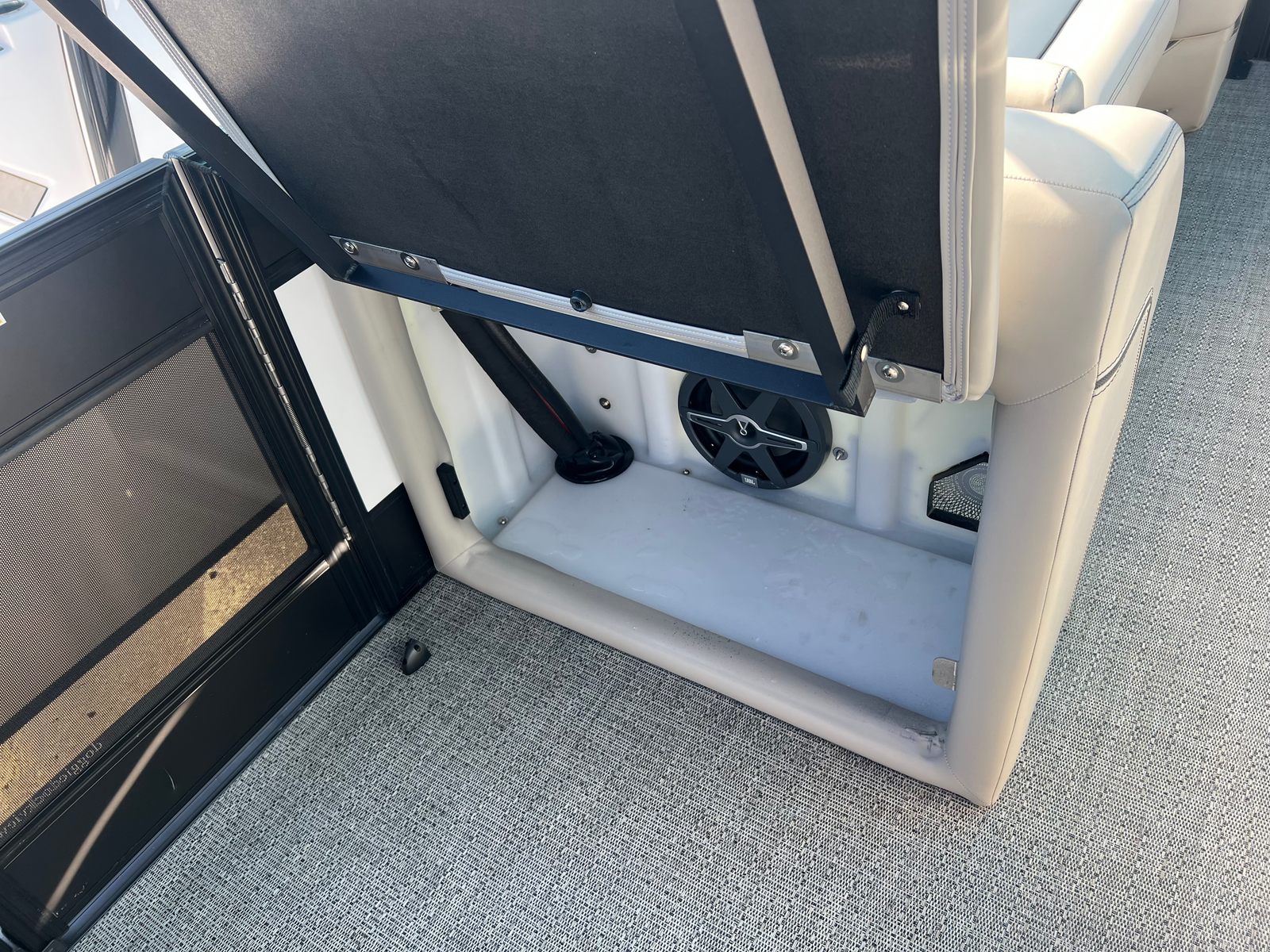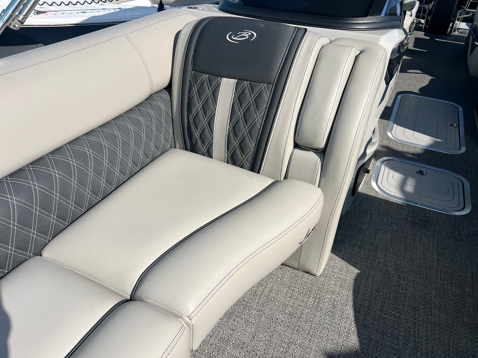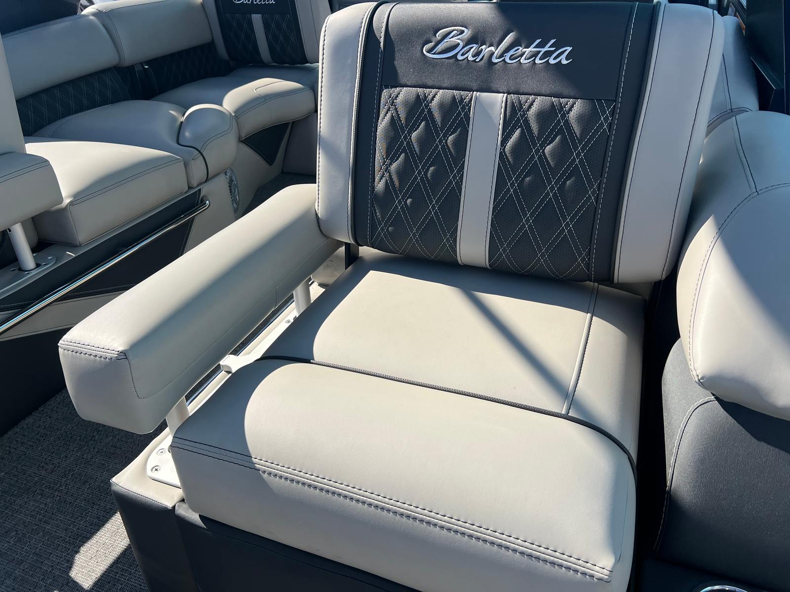 Practicality meets luxury in the Barletta Lusso L25MAT. The spacious layout allows for easy movement and plenty of storage for gear, snacks, and water toys, making it perfect for extended outings. The twin-engine setup not only boosts performance but also simplifies docking and maneuvering, giving you greater control in tight spaces. Fuel efficiency is enhanced by the advanced Mercury Verado engines, allowing you to spend more time on the water and less time refueling. The durable flooring and furniture are designed to withstand the elements, ensuring your investment remains in top condition for years to come. Exterior lighting adds safety and style, illuminating your path during nighttime adventures and creating a welcoming atmosphere for evening gatherings.