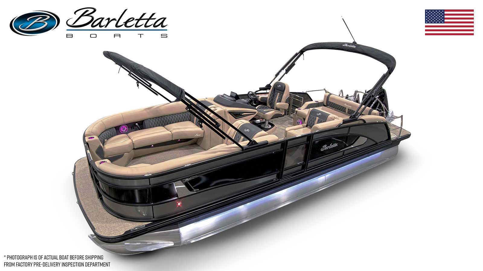 In summary, the 2026 Barletta Lusso L25U is a standout pontoon boat for sale that combines luxury, performance, and versatility in one exceptional package. With its striking Gray Moonstone and Black Diamond exterior, Blackout Package Lusso railskin, plush Carmella Tan with Onyx furniture, Amore Tan flooring, and the formidable Mercury (D) 350L V10 Verado engine, this Barletta boat for sale is ready to deliver endless fun and relaxation on the water. The Double Bimini, advanced rigging, and protective finishes further enhance your boating experience, ensuring comfort, style, and durability. If you are ready to elevate your time on the water and create lasting memories with family and friends, the Barletta Lusso L25U is the ultimate choice. Discover the difference that true luxury and performance can make—contact your local dealer today to learn more about this incredible pontoon and start your next adventure.