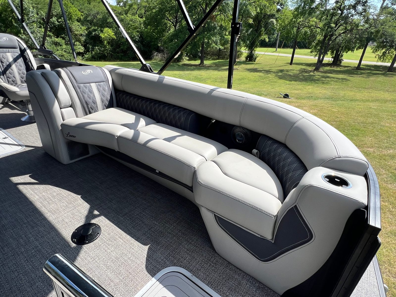 The 2025 Barletta Lusso L25UC is more than just a pontoon boat—it is a gateway to a world of fun, relaxation, and adventure. With its powerful Mercury 400L V10 Verado engine, luxurious interior, and a host of premium features including a double bimini, Blackout Package Lusso, and adjustable captain’s chair, this Barletta boat for sale is the ultimate choice for those who demand the best.If you are searching for a pontoon boat for sale that combines style, performance, and comfort, look no further than the Barletta Lusso L25UC. Experience the joy of boating like never before and create lasting memories with family and friends. Contact your local dealer today to learn more about this exceptional pontoon and take the first step toward your next great adventure on the water.