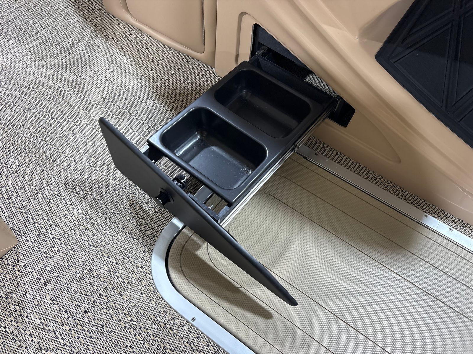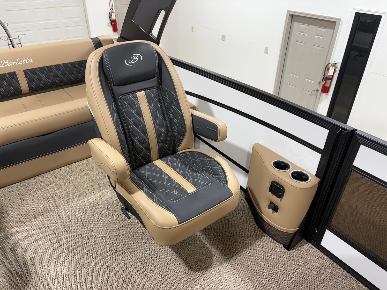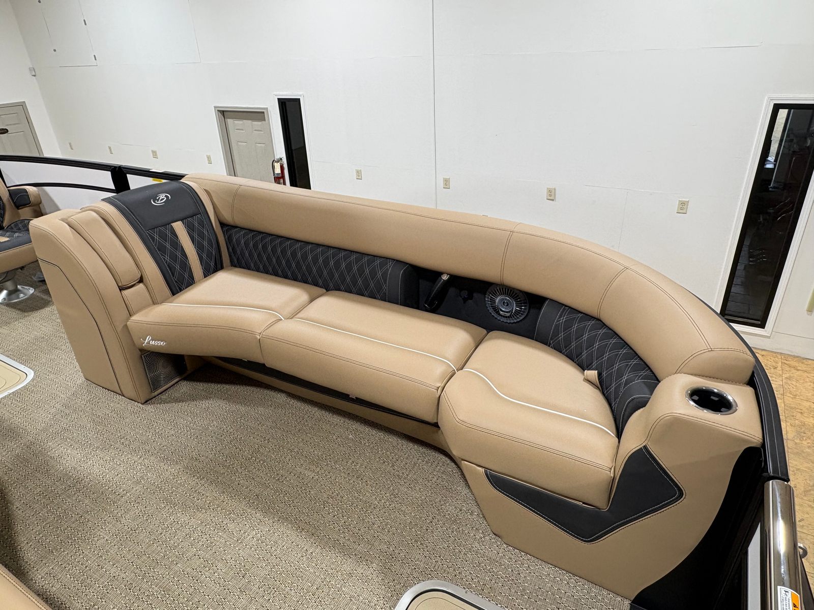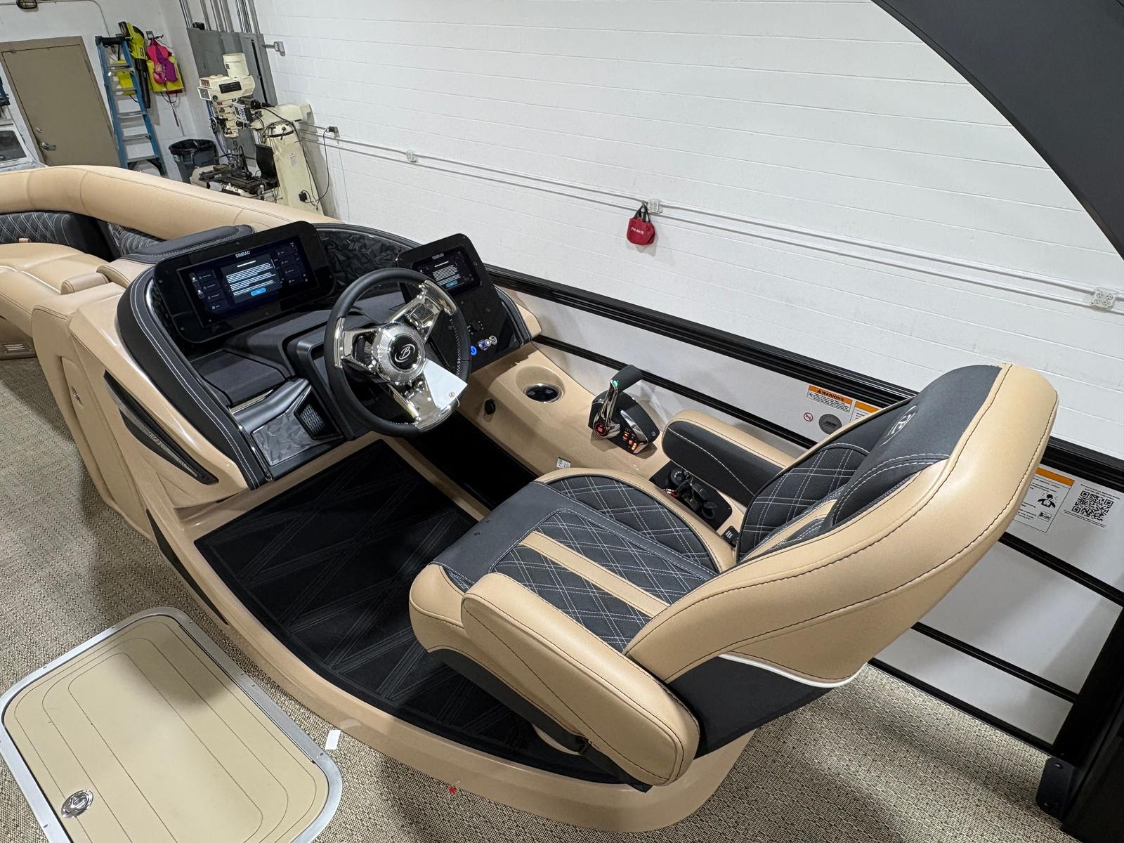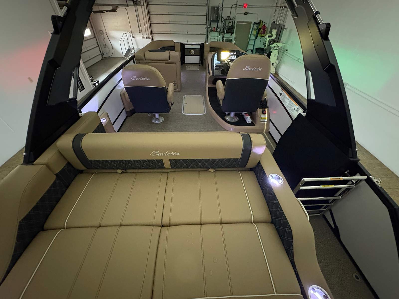 The Barletta Lusso L25UCA is packed with premium features that elevate your boating experience. The exterior lighting, including white underdeck and underwater lights, creates a captivating ambiance for evening cruises and dockside gatherings. Digital gauges provide clear, real-time information at a glance, ensuring you stay informed and in control at all times. The carefully selected Carmella Tan with Onyx furniture offers plush seating and ample space for relaxation, while the Amore Tan flooring adds a touch of elegance and comfort underfoot. The Blackout Package Lusso railskin not only enhances the boat’s appearance but also adds an extra layer of sophistication and exclusivity.