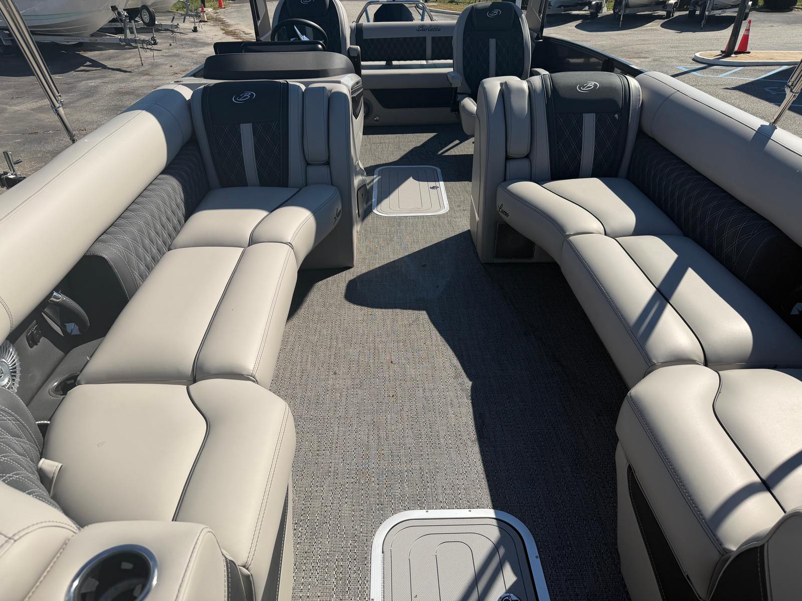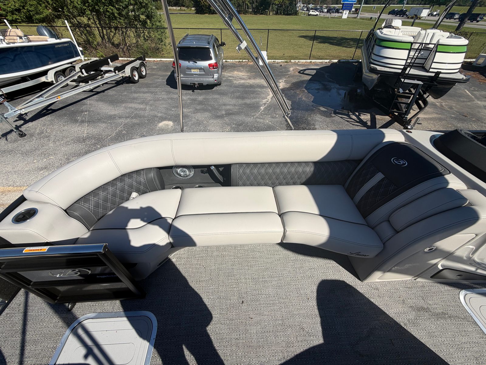 Owning the Barletta Lusso L25UCA pontoon boat means embracing a lifestyle of fun, relaxation, and adventure. The spacious deck is perfect for hosting gatherings, enjoying meals, or simply soaking up the sun. With its luxurious seating and open layout, you’ll have plenty of room for family and friends to join in the fun. The powerful Mercury 300L Verado V8 engine ensures you can explore new destinations with confidence, while the advanced steering and digital controls make every trip smooth and enjoyable. Whether you’re cruising at sunset, anchoring for a swim, or celebrating a special occasion, this pontoon boat offers the perfect setting for creating lasting memories.