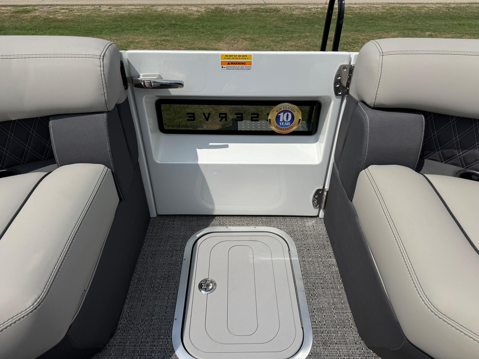 The Reserve Leggera 23UCA is designed with practicality in mind, making ownership as enjoyable as your time on the water. The AccuThruster System makes docking a breeze, even in crowded marinas or challenging conditions, giving you confidence every time you return to shore. The thoughtfully arranged deck space provides plenty of room for storing gear, water toys, and personal items, ensuring that everything you need for a day on the water is always within reach.Fuel efficiency is another key benefit, thanks to the advanced Mercury V10 Verado engine and optimized prop setup. Spend more time cruising and less time refueling, maximizing your enjoyment and minimizing your operating costs. The durable flooring and high-quality upholstery are easy to clean and maintain, so your pontoon boat always looks its best with minimal effort.