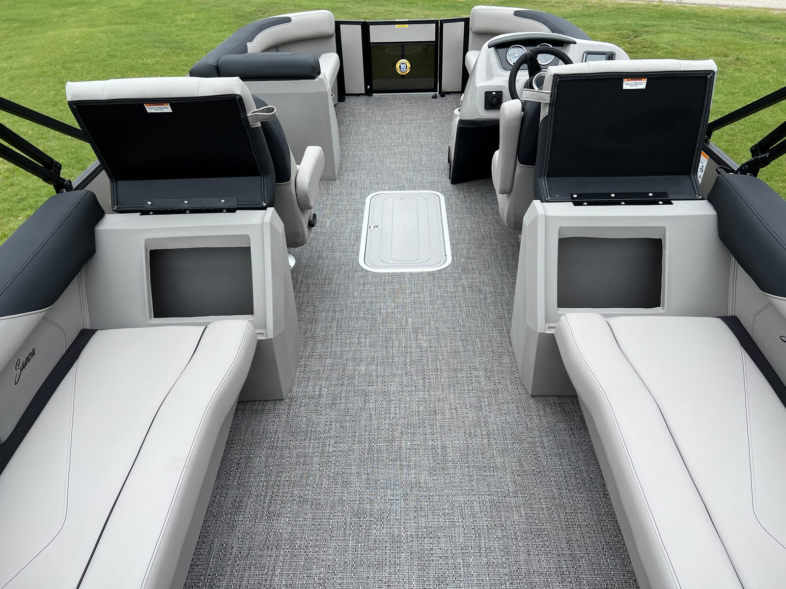 Step aboard the Barletta Sanza S22QC and discover a world of comfort and convenience. The Marquesan Gray with Onyx furniture creates a sophisticated and inviting atmosphere, perfectly complemented by the Amore Gray flooring that is both stylish and easy to maintain. The Sanza Triple Toon Package enhances stability and ride quality, making this pontoon boat ideal for a variety of water conditions.One of the standout features is the in-floor midship storage, providing ample space to stow away gear, water toys, and personal items. This thoughtful addition helps keep the deck clutter-free and organized, so you can focus on enjoying your time on the water. Every detail, from the premium upholstery to the innovative storage solutions, is designed to maximize your comfort and convenience.