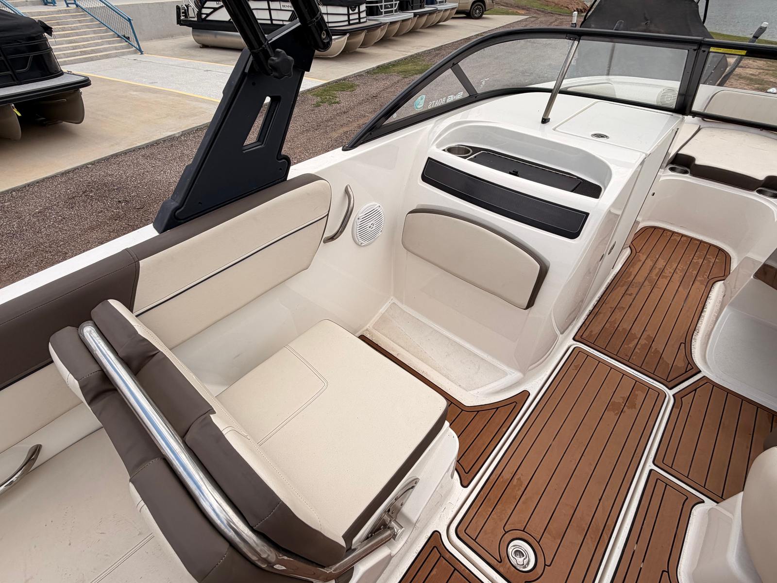 The Bayliner VR6 is packed with features designed to enhance your boating experience. Its 23-foot length offers a spacious deck layout, allowing for comfortable seating arrangements and plenty of room for gear and supplies. The bowrider configuration means you get the best of both worlds: open seating in the bow for sunbathing or socializing, and a versatile cockpit area for relaxing or entertaining.This used Bayliner boat for sale has been thoughtfully designed with both style and functionality in mind. The modern hull design not only looks great but also contributes to a smooth and stable ride. The VR6’s ergonomic helm ensures that the captain has easy access to all controls, making navigation and operation a breeze.