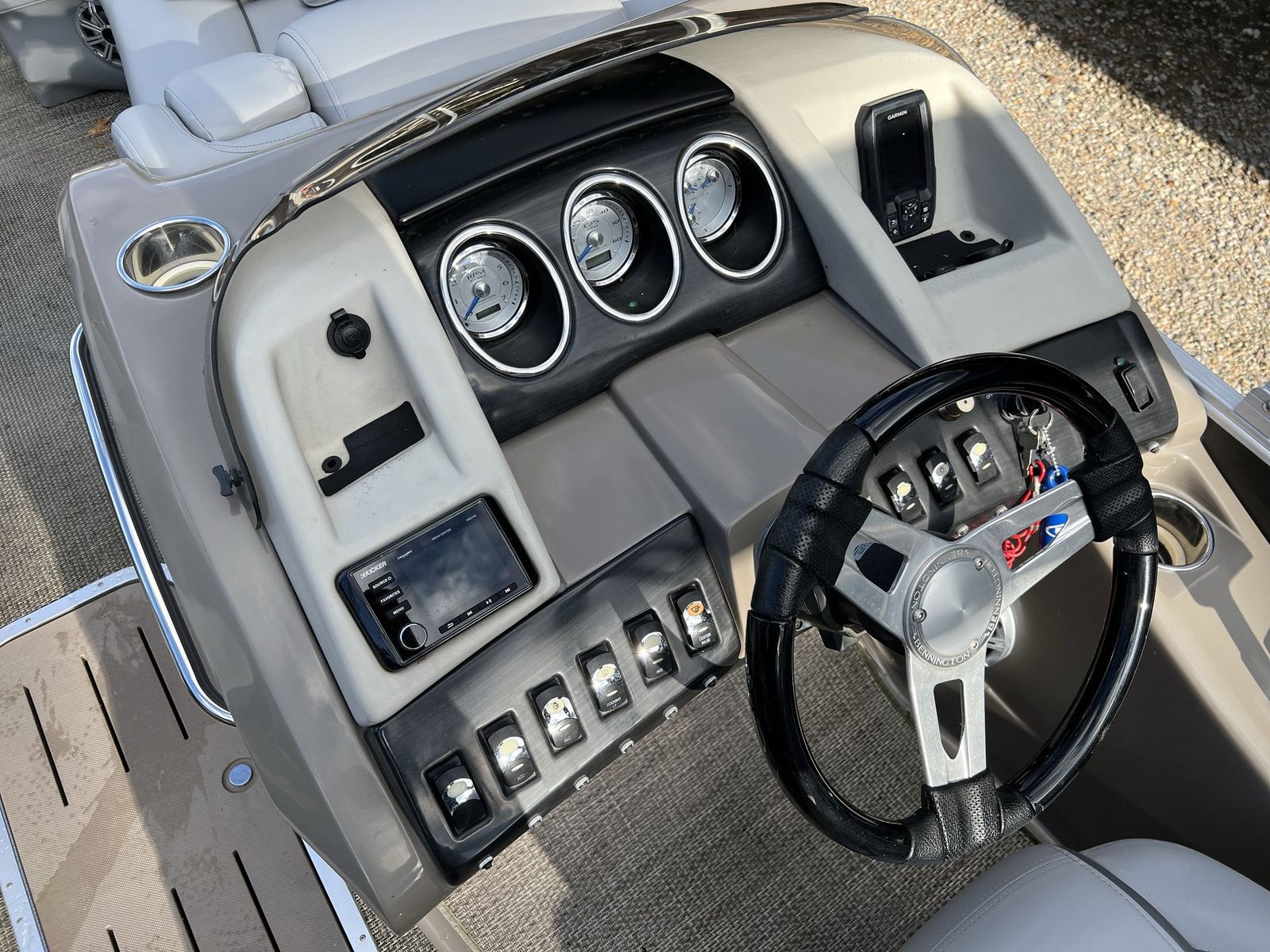 This Bennington pontoon boat for sale is as practical as it is enjoyable. The generous storage compartments allow you to bring along everything you need for a day on the water, from coolers and snacks to fishing gear and water toys. The boat’s design makes docking and launching straightforward, so you can spend less time preparing and more time enjoying your adventure.Fuel efficiency is another key benefit of the Bennington 23 RFB. The 175 HP engine is engineered for optimal performance without excessive fuel consumption, allowing you to maximize your time on the water while minimizing trips to the fuel dock. The sturdy construction and reliable engine also mean lower maintenance requirements, giving you peace of mind and more time to focus on making memories.