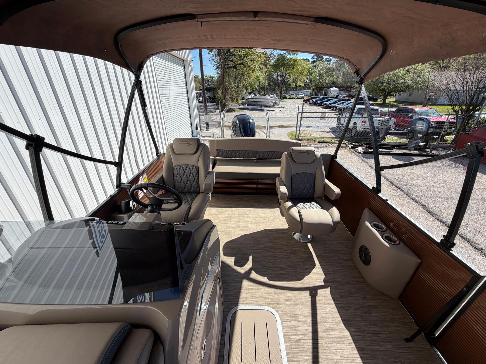 The 2023 Bennington 24 Lxsb pontoon boat is designed with both comfort and convenience in mind. Its spacious 24-foot deck offers plenty of room for entertaining, lounging, and making memories with loved ones. The open layout allows for easy movement throughout the boat, while plush seating ensures everyone can relax in style. The pontoon’s sturdy construction and high-quality materials reflect Bennington’s dedication to excellence, providing peace of mind and lasting value.This used pontoon boat for sale also features a modern helm with intuitive controls, making navigation a breeze for both seasoned boaters and newcomers alike. The thoughtful design extends to every detail, from the ample storage compartments for your gear and supplies to the stylish accents that set this Bennington boat apart from the competition.
