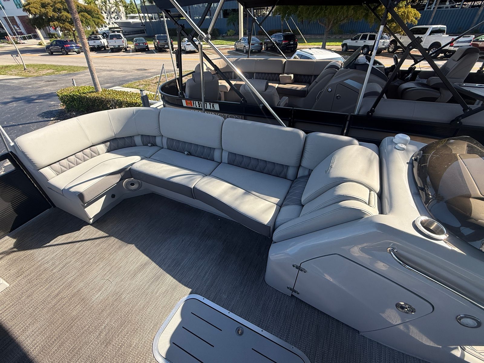 This Bennington boat for sale is packed with features designed to elevate your boating experience. The spacious deck layout provides plenty of room for guests to relax, socialize, and soak up the sun. The high-quality construction and premium materials ensure durability and comfort, while the innovative design maximizes both style and functionality. The 27.83-foot length offers generous seating and open spaces, perfect for hosting gatherings or enjoying quiet moments on the water. The twin engines provide not only impressive power but also redundancy for added peace of mind during longer excursions.
