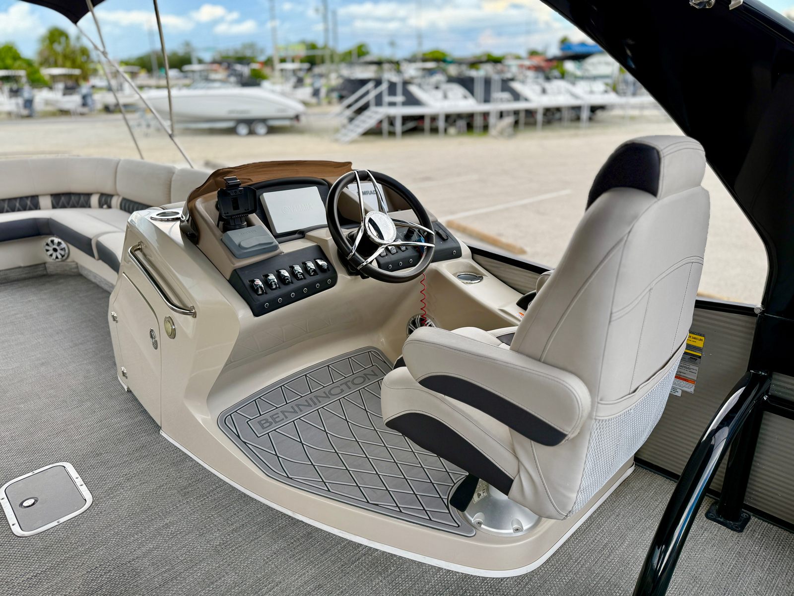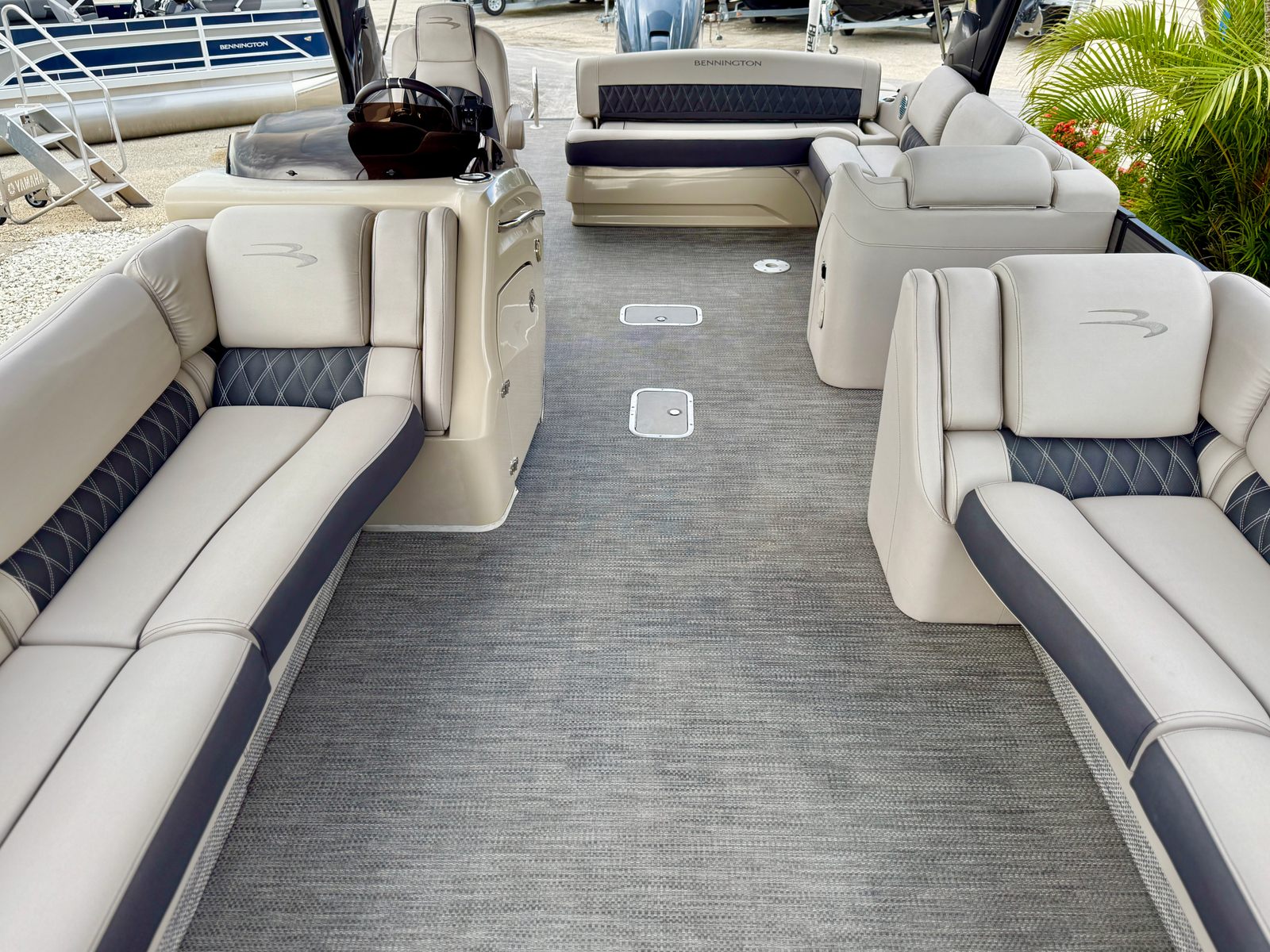 Powering this Bennington pontoon is a robust single engine with an impressive 425 horsepower, delivering smooth and reliable performance on the water. With only 298 engine hours, this boat has plenty of life left for countless adventures. The powerful engine ensures quick acceleration, effortless cruising, and the ability to handle a variety of water conditions with confidence. Whether you are towing water toys, exploring new coves, or simply enjoying a leisurely cruise, the performance of this Bennington boat for sale will exceed your expectations.