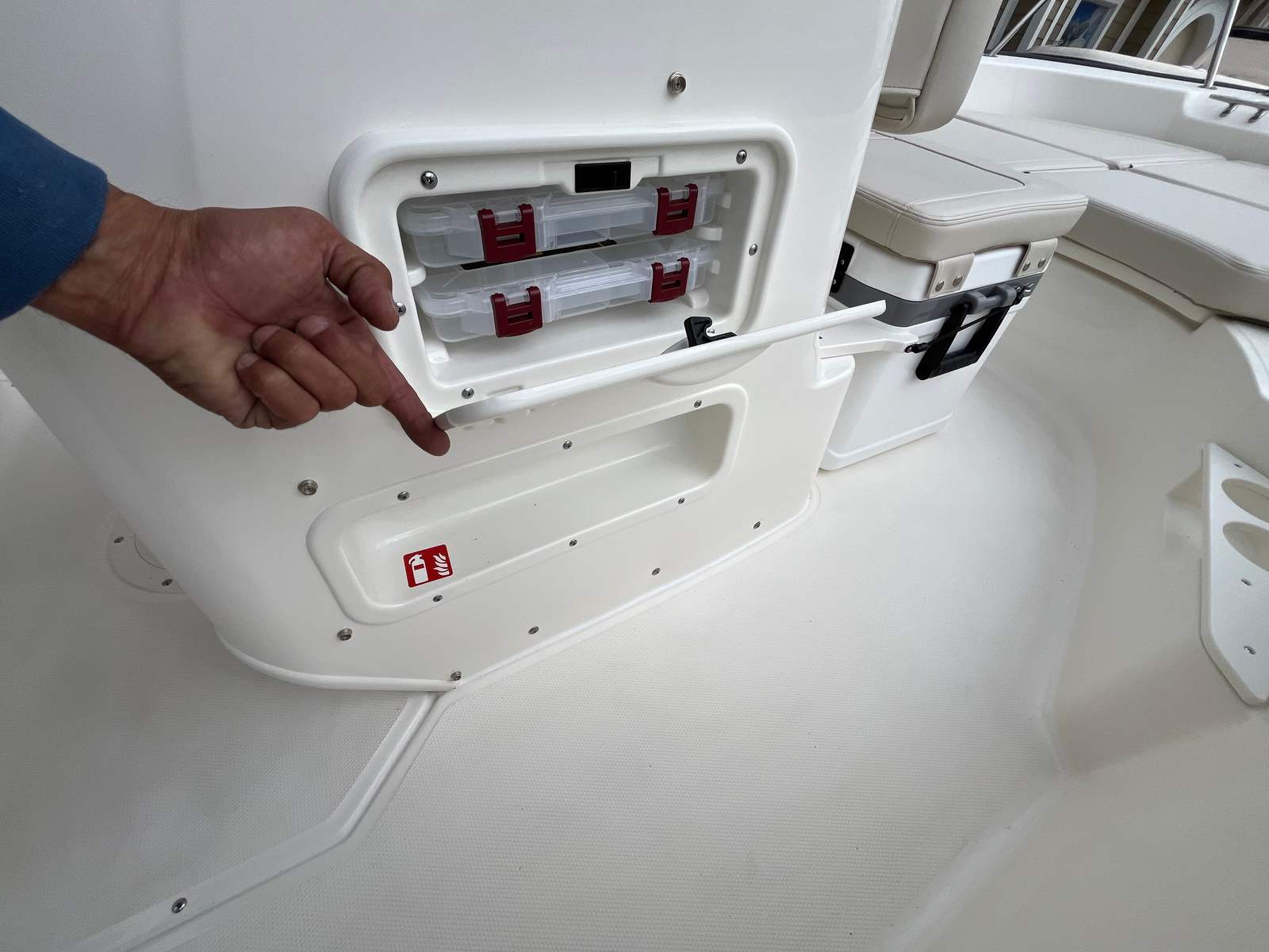 Fishing Package: Includes a console-mounted rod holder, tackle drawers, and a 72-quart cooler with cushion for serious anglers.