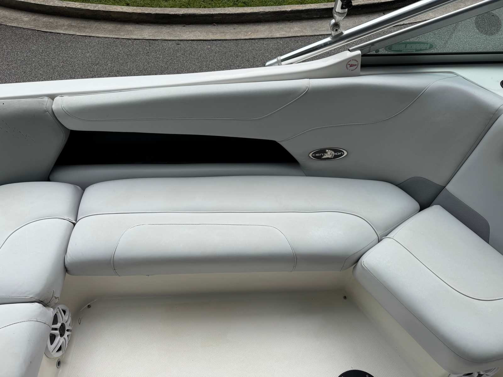 The Centurion Cyclone-Storm PKG III is packed with features designed to enhance your time on the water. Its 22-foot length provides a spacious deck, allowing for comfortable seating and plenty of room for gear, coolers, and water sports equipment. The boat’s layout is optimized for both relaxation and action, with designated areas for lounging, socializing, and preparing for your next run. The hull design is engineered to create the ideal wake for skiing and wakeboarding, making it a top choice for enthusiasts who demand performance and versatility. As a used Ski & Wakeboard boat for sale, the Cyclone-Storm PKG III offers a blend of proven reliability and modern amenities, ensuring you get the best of both worlds.