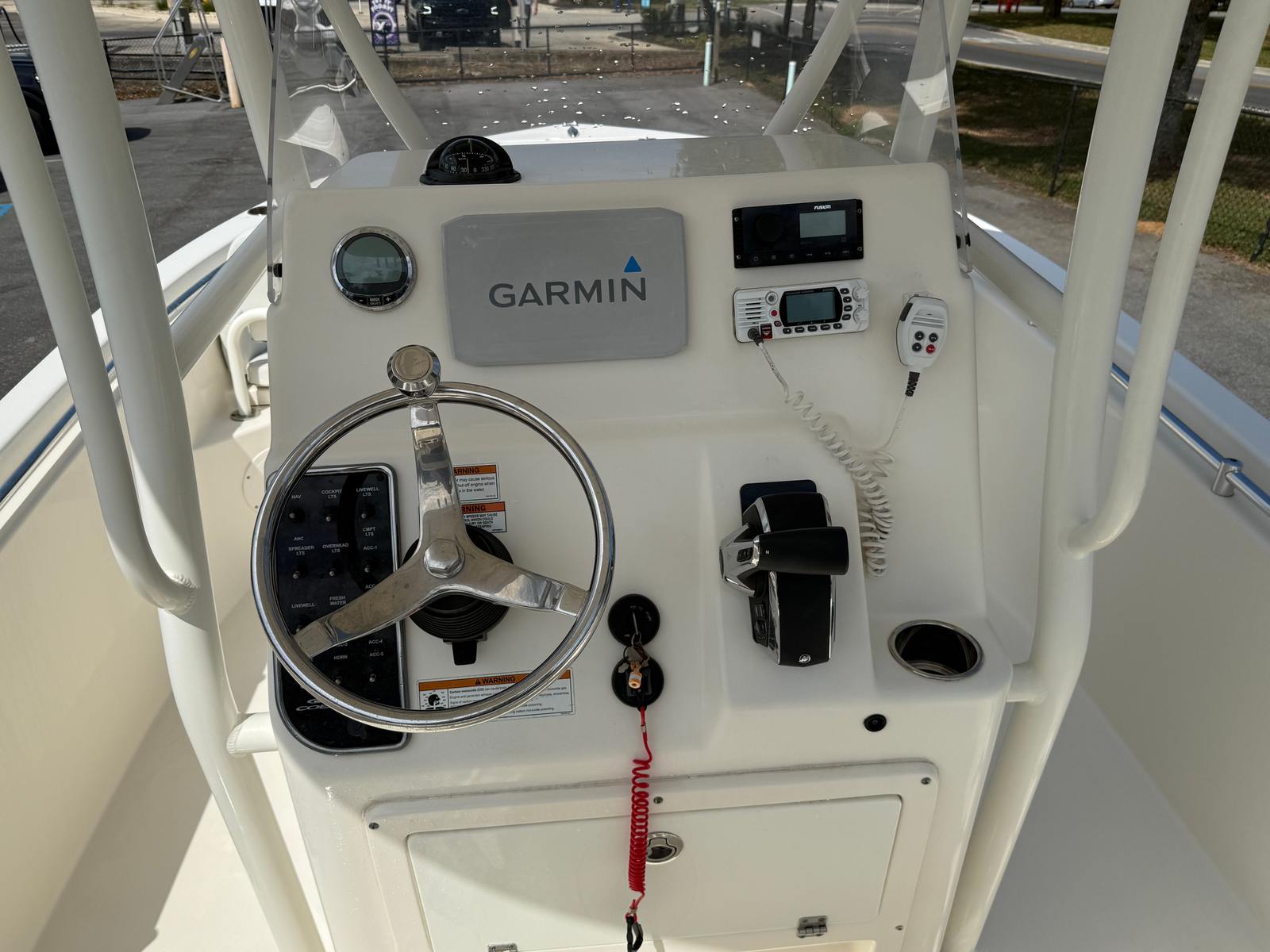 This 2022 Cobia 220 Center Console boat for sale comes equipped with features designed to enhance your boating experience. The center console layout maximizes deck space, allowing for easy movement around the boat and providing ample room for both anglers and passengers. The ergonomic helm station offers clear sightlines and intuitive controls, ensuring a comfortable and confident driving experience.The Cobia 220’s thoughtful design includes plenty of storage options for your gear, tackle, and personal items, keeping the deck clutter-free and organized. The spacious bow area is perfect for relaxing in the sun or casting a line, while the aft seating provides a comfortable spot for passengers to enjoy the ride. The durable construction and high-quality materials used throughout the boat ensure longevity and low maintenance, so you can spend more time on the water and less time worrying about upkeep.