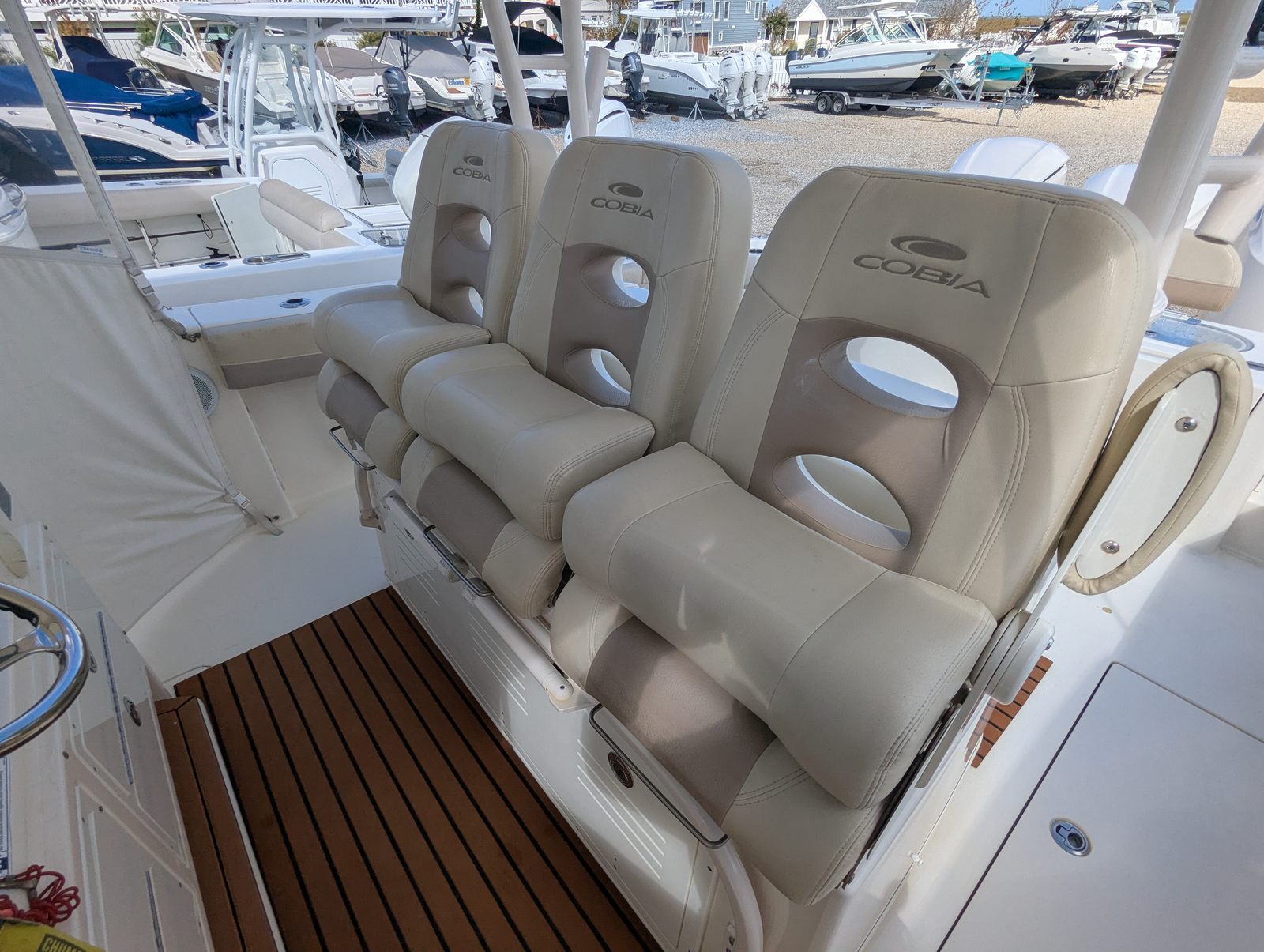 In summary, the 2018 Cobia 344 CC is a remarkable Center Console boat for sale that combines power, style, and versatility. With its triple-engine setup delivering 900 horsepower, spacious 33-foot layout, and thoughtful design, this Cobia boat for sale is perfect for anyone seeking adventure, comfort, and reliability on the water. Whether you’re planning fishing trips, family outings, or luxury getaways, the Cobia 344 CC stands ready to exceed your expectations. Don’t miss the opportunity to own this exceptional vessel—contact the dealer today to learn more and start your next boating adventure.