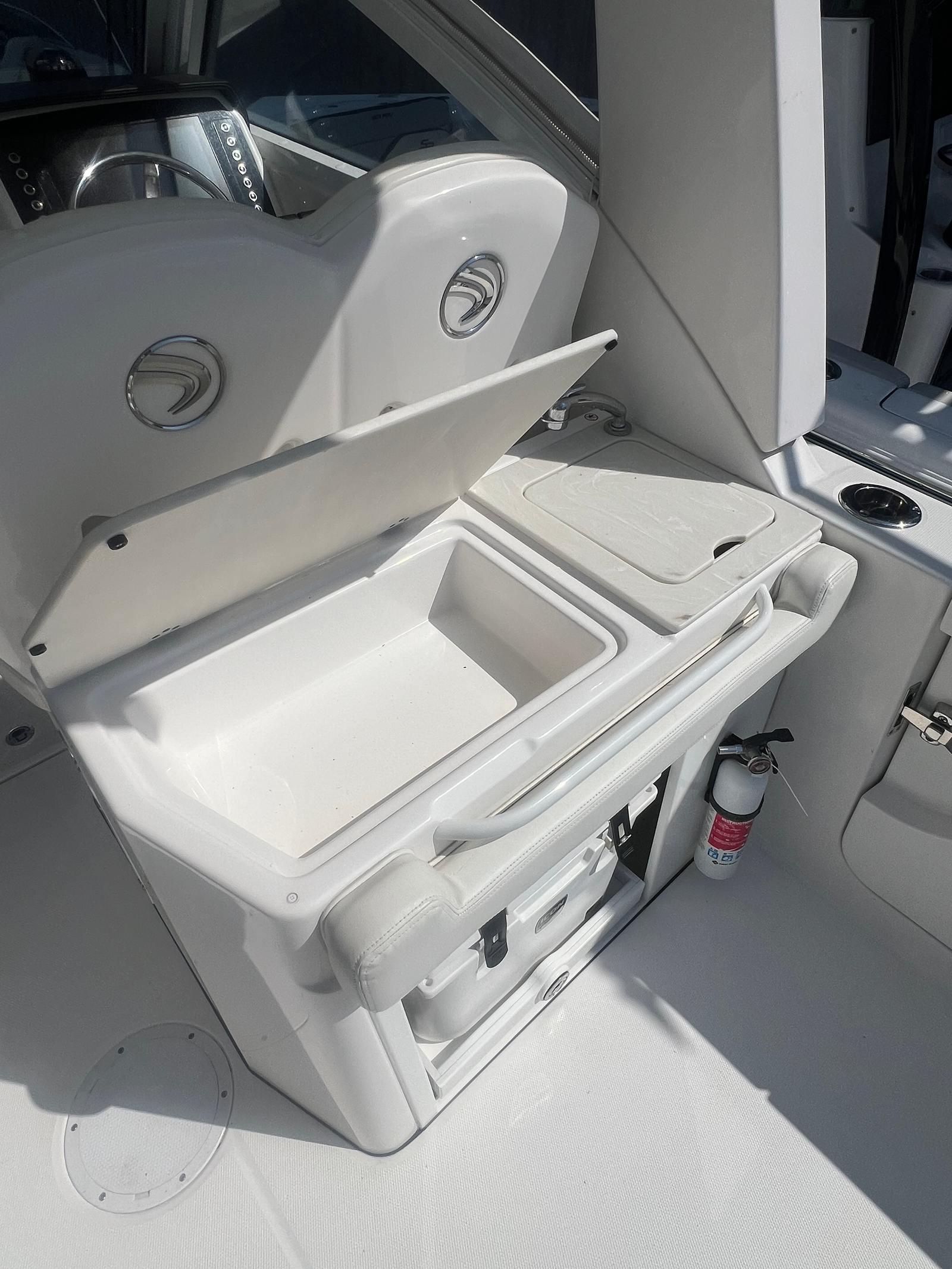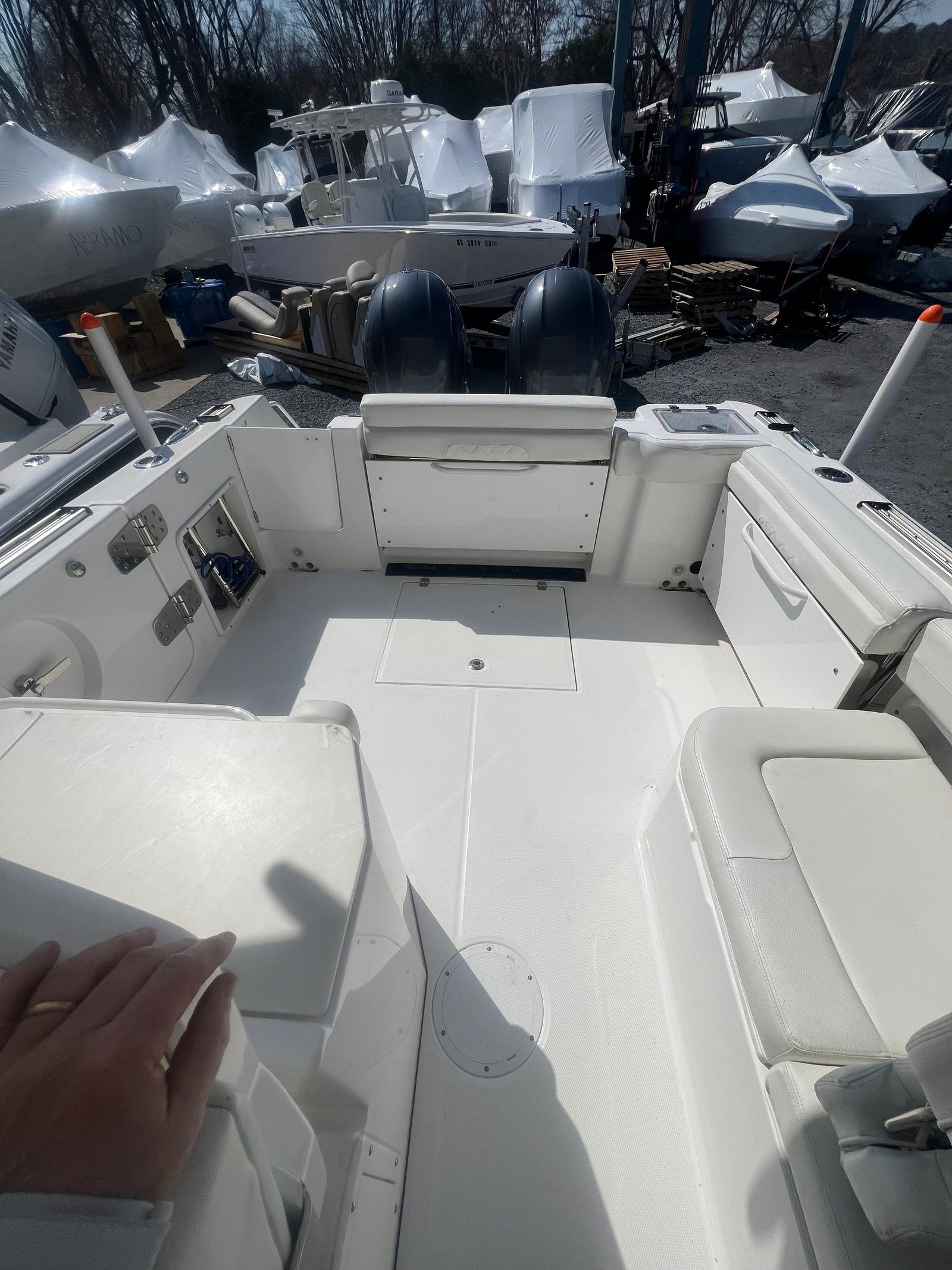 The Edgewater 262 CX Dual Console is packed with features that enhance both functionality and enjoyment. The spacious dual console layout offers ample seating for family and friends, creating a welcoming environment for socializing and relaxation. The ergonomic helm station is designed for ease of use, giving the captain full control and excellent visibility. The generous beam provides stability and comfort, even in choppy conditions, while the thoughtfully designed cockpit ensures that every inch of space is optimized for convenience.This Edgewater boat for sale is built with premium materials and attention to detail, reflecting the brand’s commitment to quality and durability. The dual console configuration allows for easy access to both the bow and stern, making it simple to transition between sunbathing, fishing, or enjoying water sports. The 262 CX also features ample storage compartments, ensuring that all your gear and essentials are neatly stowed away and easily accessible.