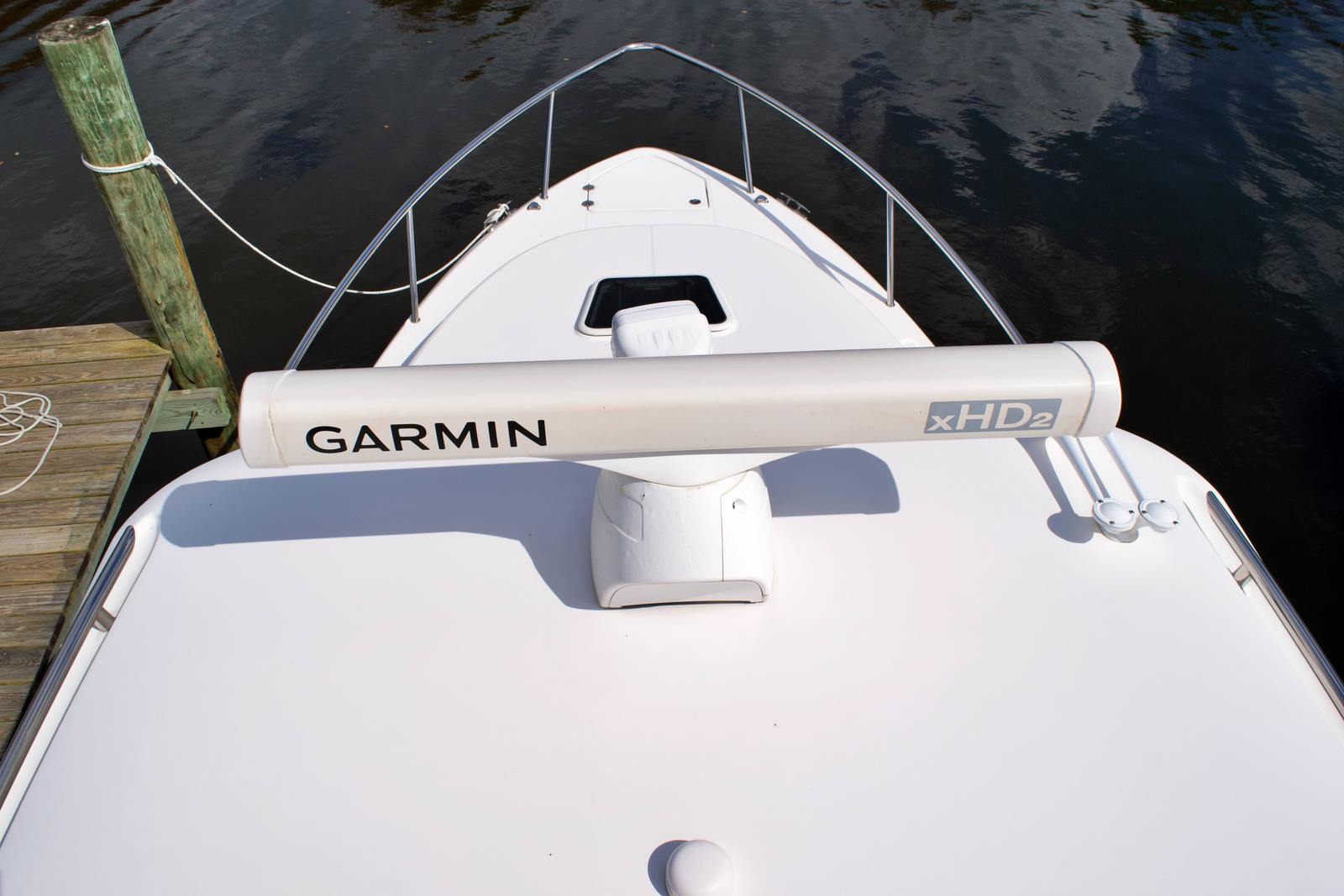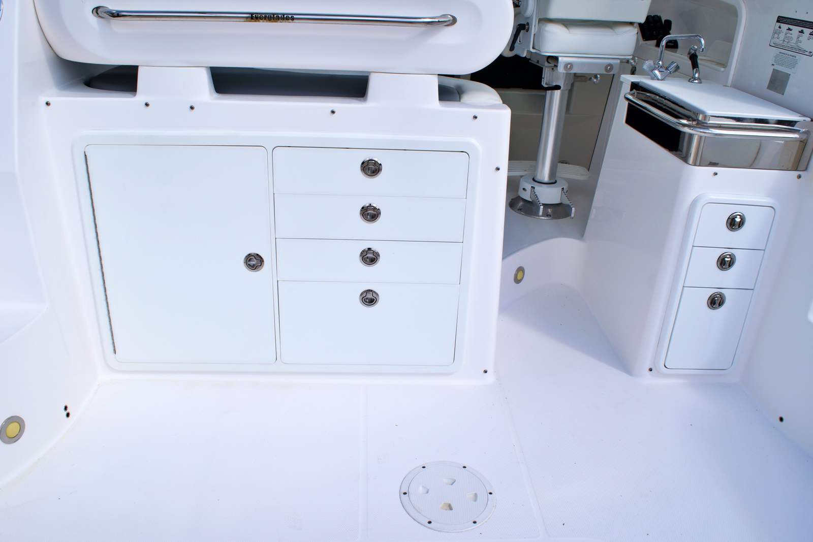 The Everglades 320 EX is loaded with features that enhance both its fishing capabilities and onboard comfort. As an offshore boat for sale, it’s designed to meet the needs of serious anglers while also catering to those who appreciate luxury and convenience. The spacious cockpit provides plenty of room for casting lines and reeling in the catch of the day, while the well-designed helm offers excellent visibility and intuitive controls for stress-free navigation. The 32-foot length ensures generous deck space, making it easy to move around and enjoy all the amenities this Everglades boat for sale has to offer.