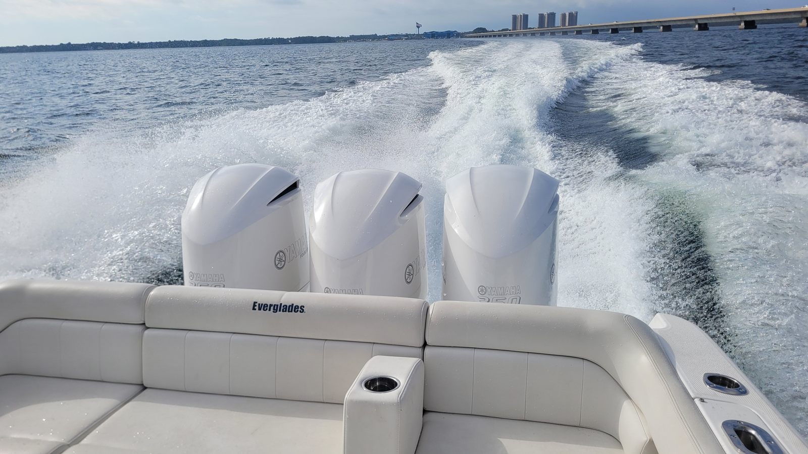 Power and performance are at the heart of the Everglades 360 LXC. Equipped with three Yamaha F350 V8 engines this walkaround boat is engineered for exhilarating speed, smooth handling, and reliable performance in a variety of conditions. The triple-engine setup ensures that you have the thrust and agility to tackle offshore excursions, reach your favorite fishing spots quickly, or cruise effortlessly along the coastline. With only 260 engine hours, these engines have plenty of life left, offering peace of mind and confidence for your future journeys.