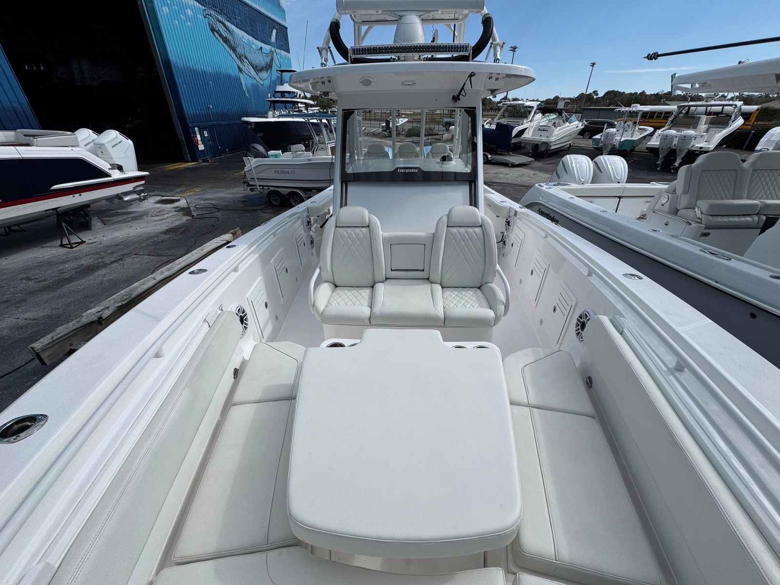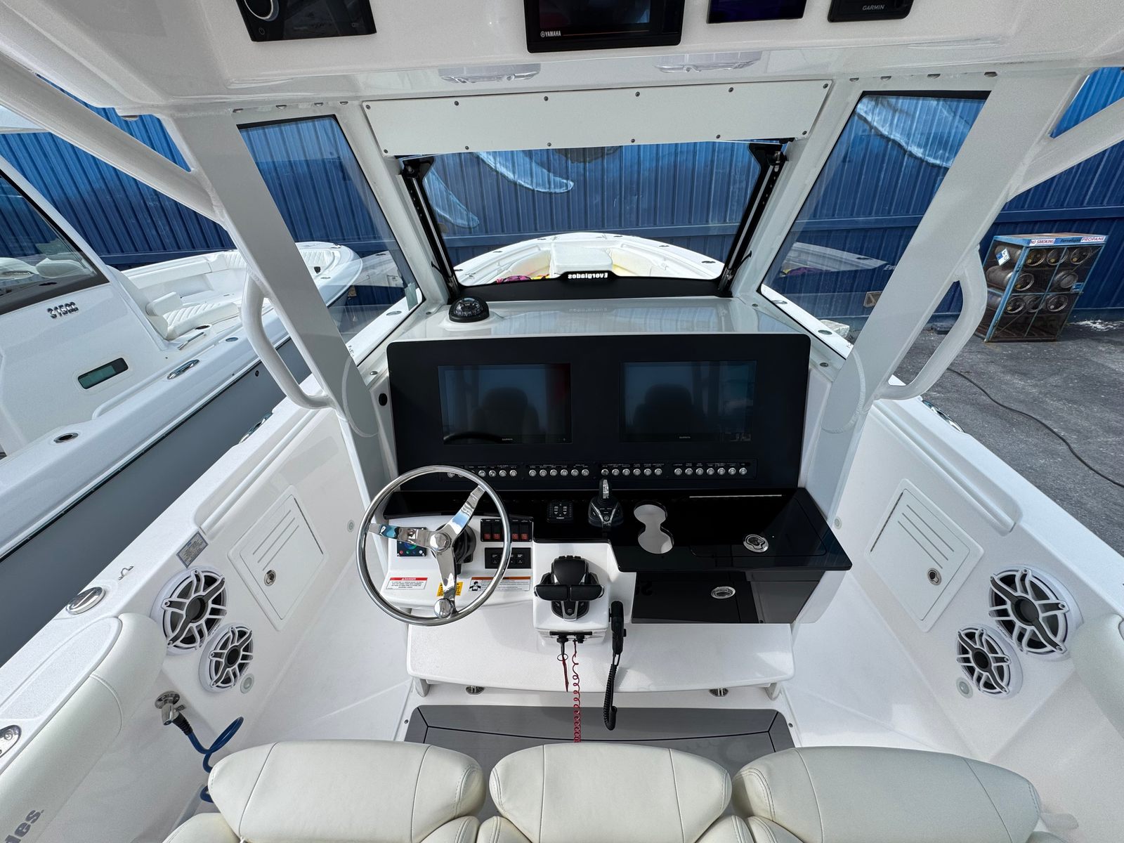 Seakeeper !!Inside dry stored since new! This beautiful Everglades 365cc with full upper station has been stored inside our state of the art dry stack since new and it shows! Extremely low hours on her preferred Twin Yamaha F425's with extended warranties until 06/25/2026, this loaded out machine has been very lightly used. This beautiful boat is painted with Awlgrip in a striking Speedblue Metallic color with matching painted engines. She is loaded with every option and is priced to sell immediately.