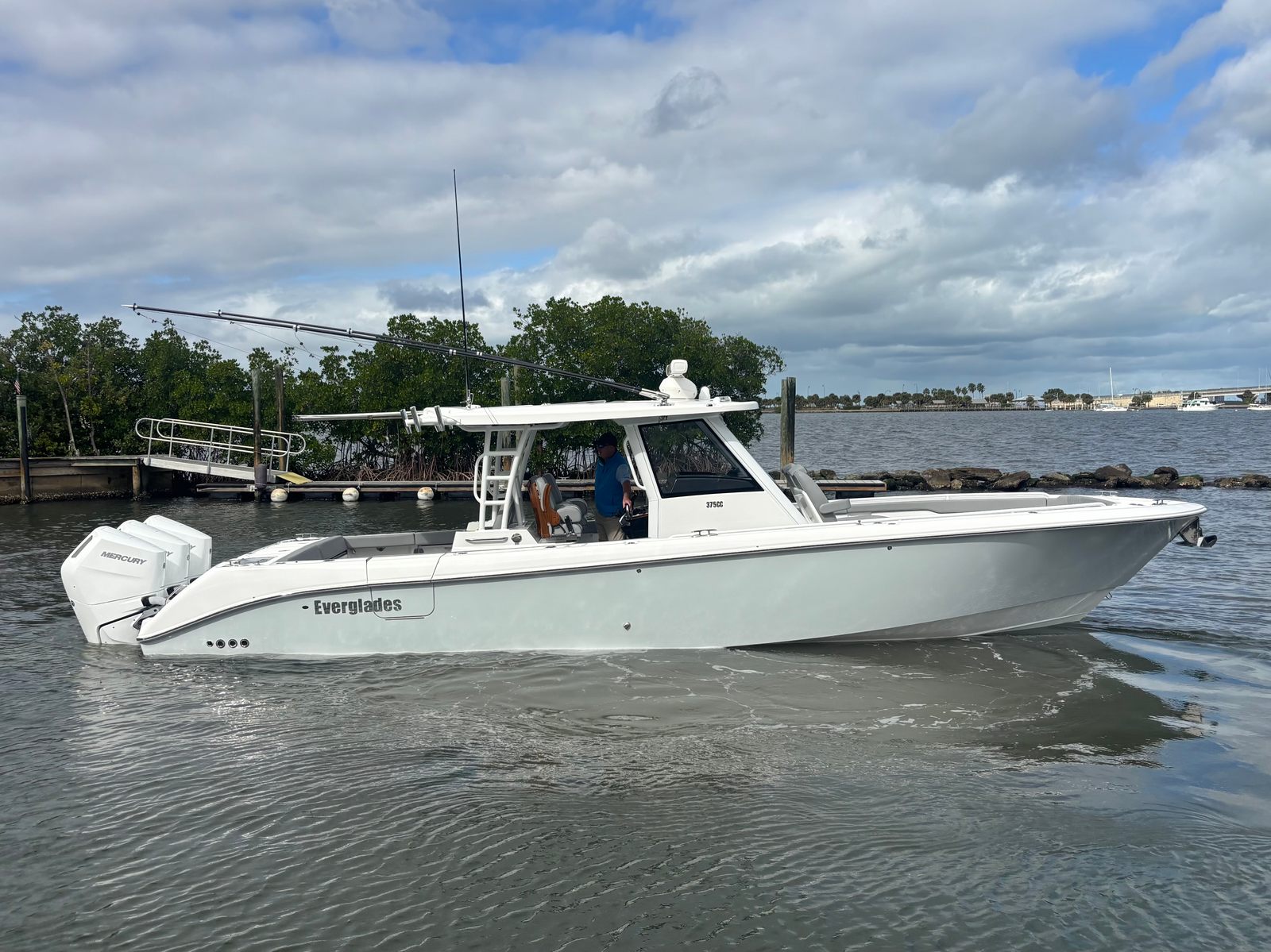 Triple Mercury 400 V10 | (88) Current Hours | Everglades (3) Year Components Warranty Expires July, 2028 | Mercury Engine Extended Warranties Expire June, 2032 | Hull Color - Whisper Gray | Interior Color - Flint Gray | Teak Trim Package | Release Marine | Teak Ladder Back Helm Seats | Dual Garmin 9222 Chart Plotters | Garmin Fantom 4' Open Array Radar | Garmin 315 VHF | AIS 800 Receiver | GXM 54 Sirius Weather Receiver | B175 High & Low Transducers | Sionyx Night Vision Camera | Canvas Package - Silver Color | Carbon Fiber Steering Wheel | Engine Flush System | DC Powered Cabin & Helm AC | DC Powered Chiller Plate - Mezzanine Box | JL Speakers M6 LED | Triple Lower Profile Light Bars | Retractable Makefast Awning | Seakeeper 3 Stabilizer | Upgraded Zip Wake PRO 400 E Series | Under Gunnel (4) Electric Reel Power Ports | Underwater LED Lights | SeaDek Flooring | (2) Gemlux Lockable Swival Rod Holders | Gemulx Carbon Fiber 18' Outriggers| SALES CONTACT - CHRIS FRAMBES 772.528.0840