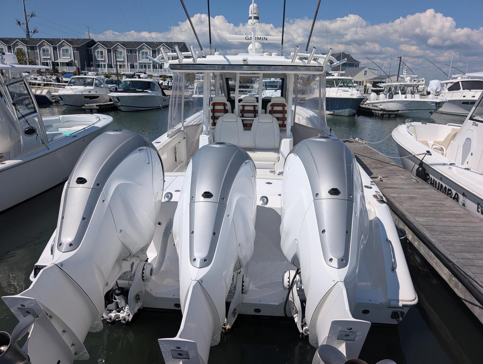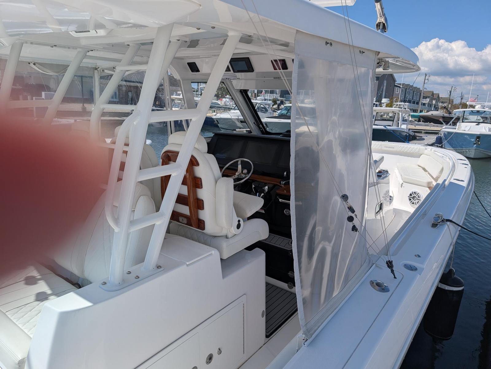 Powering the 2021 Everglades 395CC are three high-performance engines, delivering a combined 1,275 horsepower. This triple-engine setup ensures exhilarating speed, responsive handling, and the confidence to tackle both calm bays and challenging offshore conditions. Whether you are chasing the horizon or navigating tight marinas, the Everglades 395CC offers a thrilling yet stable ride. The advanced hull design enhances efficiency and provides a smooth, dry ride, making every journey enjoyable and comfortable. For those seeking a center console boat for sale that delivers both power and precision, the 395CC is an outstanding choice.
