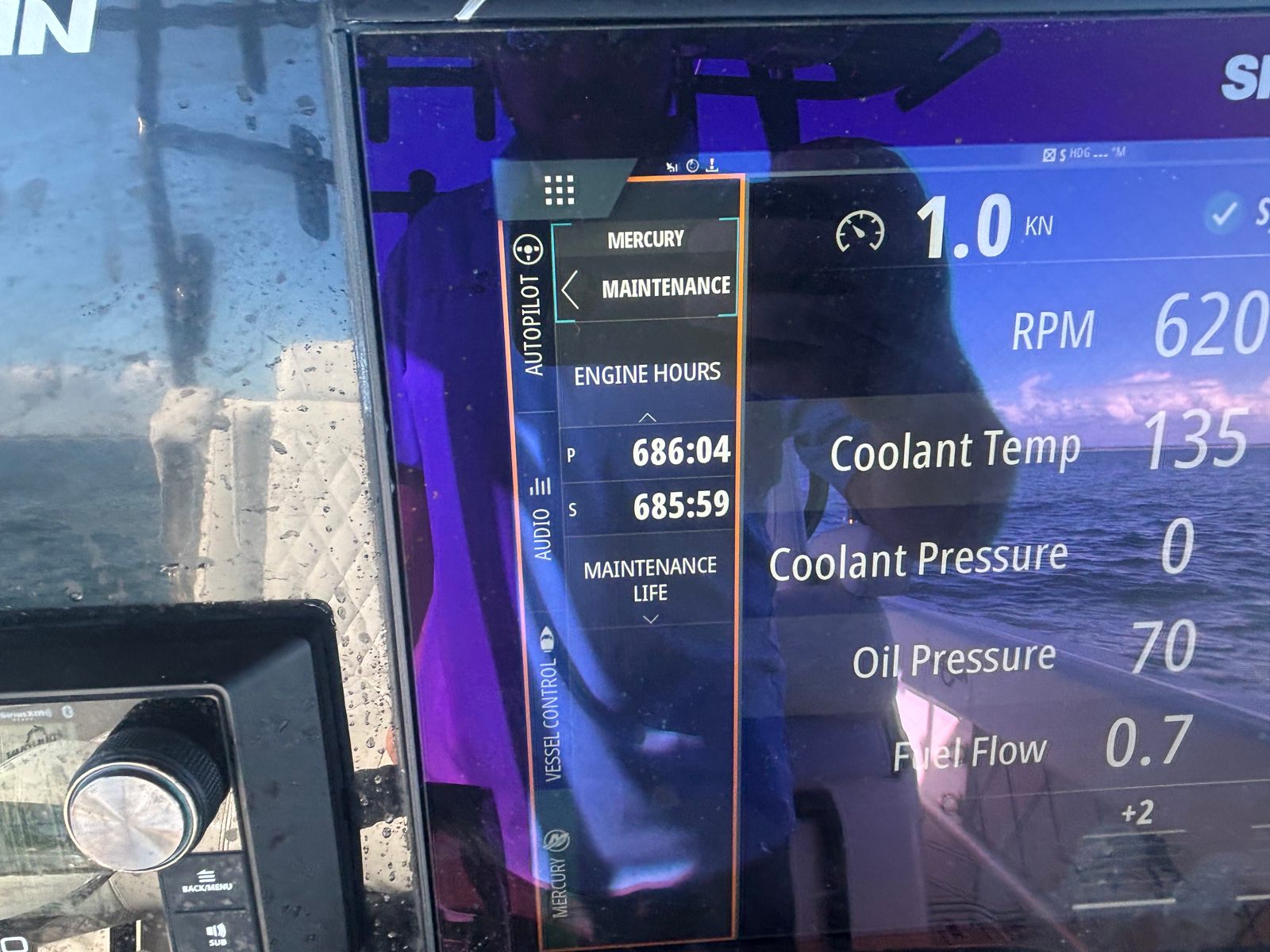 Practicality is a hallmark of the Fountain 34 TE. Its efficient hull design contributes to fuel savings, making longer trips more economical. The Center Console layout simplifies docking and maneuvering, whether you’re pulling into a marina or anchoring offshore. Storage solutions are integrated throughout the boat, providing ample space for fishing gear, water toys, and personal belongings.Maintenance is straightforward, thanks to the Fountain 34 TE’s accessible engine compartments and durable construction. The used condition of this Fountain boat for sale means you can enjoy premium features at a competitive price, with the confidence that the vessel has been well cared for. The 690 engine hours reflect a history of reliable use, and the robust build ensures many more adventures to come.