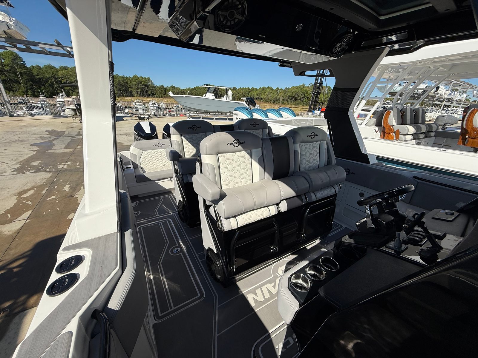 The 2023 Fountain 38 SCX is a 38-foot Center Console boat that embodies the legendary Fountain commitment to innovation and quality. This model is designed to impress, whether you’re cruising along the coastline, heading offshore for a fishing expedition, or enjoying a day of watersports with family and friends. Its striking profile and modern lines make it an eye-catching vessel at any marina, while its robust construction ensures durability and reliability for years to come. As a used Fountain boat for sale, this 38 SCX offers the perfect balance of value and high-end features, making it an attractive option for discerning boaters.