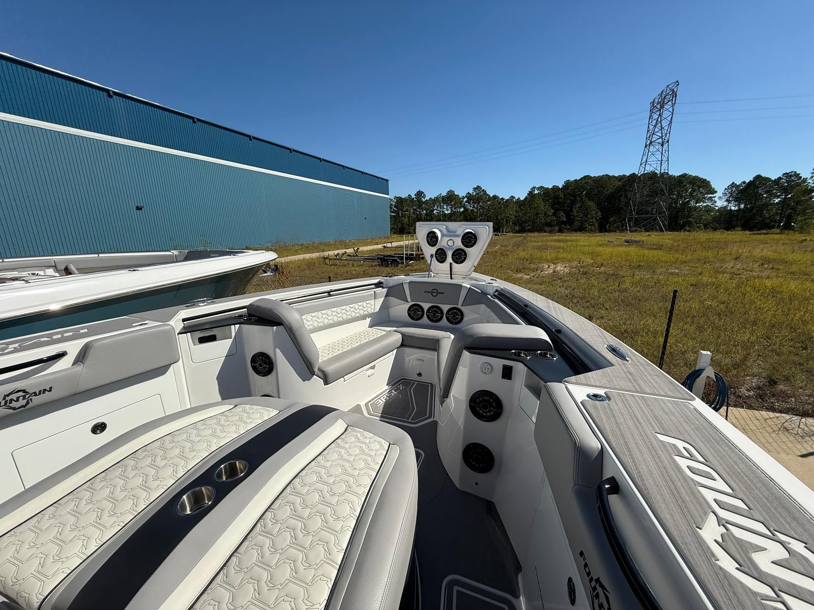 At the heart of the Fountain 38 SCX lies a powerful trio of engines, delivering a combined 1350 horsepower. With only 146 engine hours, these motors are primed for many more seasons of exhilarating performance. The triple-engine configuration ensures rapid acceleration, impressive top speeds, and smooth handling even in challenging conditions. Whether you’re navigating choppy waters or cruising at high speeds, the Fountain 38 SCX responds with precision and agility. This Center Console boat for sale is built for those who demand superior performance and reliability, making it ideal for both seasoned boaters and newcomers alike.