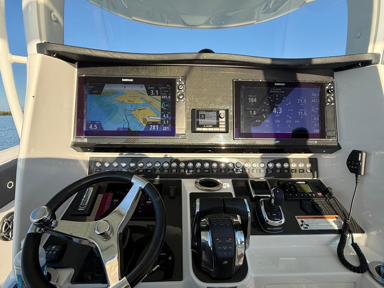 Practicality meets luxury in the Fountain 39 NX. The boat's intelligent design includes ample storage for fishing gear, water toys, and personal belongings, making it easy to keep the deck clutter-free and organized. Docking and maneuvering are simplified by the responsive controls and triple-engine configuration, allowing you to navigate tight spaces with ease. The efficient engine setup also contributes to better fuel economy, so you can spend more time on the water and less time at the fuel dock.The Fountain 39 NX is built for convenience, with features that enhance the overall ownership experience. From the easy-to-access helm station to the spacious walkways and comfortable seating, every detail is designed to make your time on the water as enjoyable and stress-free as possible. Whether you are heading out for a quick sunset cruise or planning an all-day adventure, this center console boat adapts to your needs with style and ease.