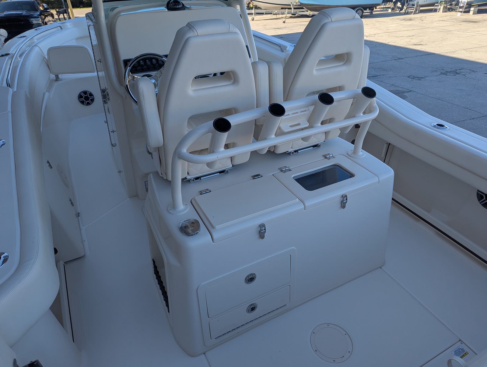 At the heart of the Canyon 271 are dual CW Yamaha F300 IDES engines, providing a combined 600 horsepower for exhilarating speed and responsive handling. These twin engines are renowned for their reliability, fuel efficiency, and smooth operation, making every journey on the water a pleasure. The power and agility of the Canyon 271 allow you to reach your favorite fishing spots quickly, navigate coastal waters with confidence, and enjoy thrilling rides with friends and family. Whether you’re cruising at a leisurely pace or opening up the throttles for a burst of speed, the performance of this Grady-White boat for sale is sure to impress.