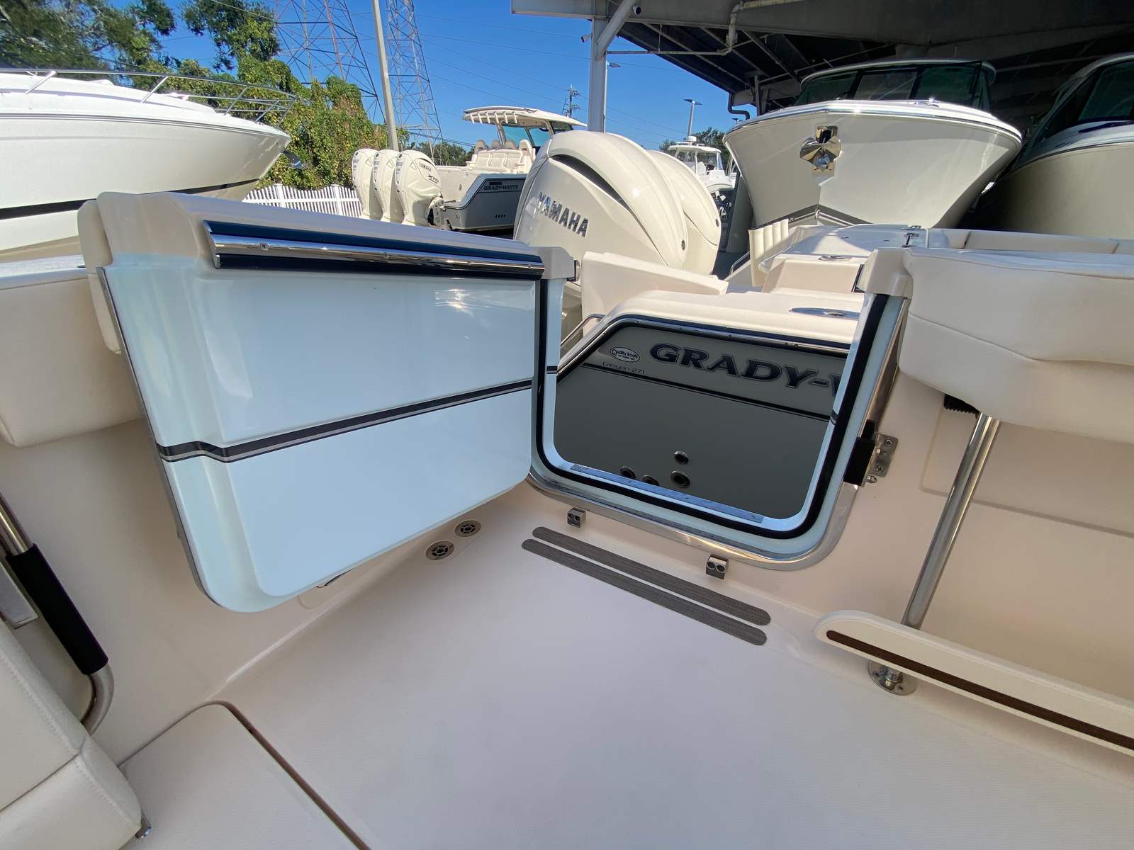 Owning the Grady-White Canyon 326 means embracing a lifestyle of fun, relaxation, and adventure. The spacious layout allows for comfortable seating and socializing, making it perfect for entertaining guests or enjoying quality time with family. The Center Console design maximizes deck space, providing plenty of room for fishing, sunbathing, or simply taking in the views. The advanced features, such as underwater lights and premium shade options, create an inviting atmosphere for both daytime and nighttime excursions.The dual Yamaha engines offer not only impressive power but also peace of mind, knowing you have reliable performance at your fingertips. The thoughtful design elements, from the cockpit step to the stylish gel coat, ensure that every outing is enjoyable and hassle-free. Whether you’re seeking excitement on the open water or a peaceful retreat in a secluded cove, the Canyon 326 delivers the versatility and comfort you desire.
