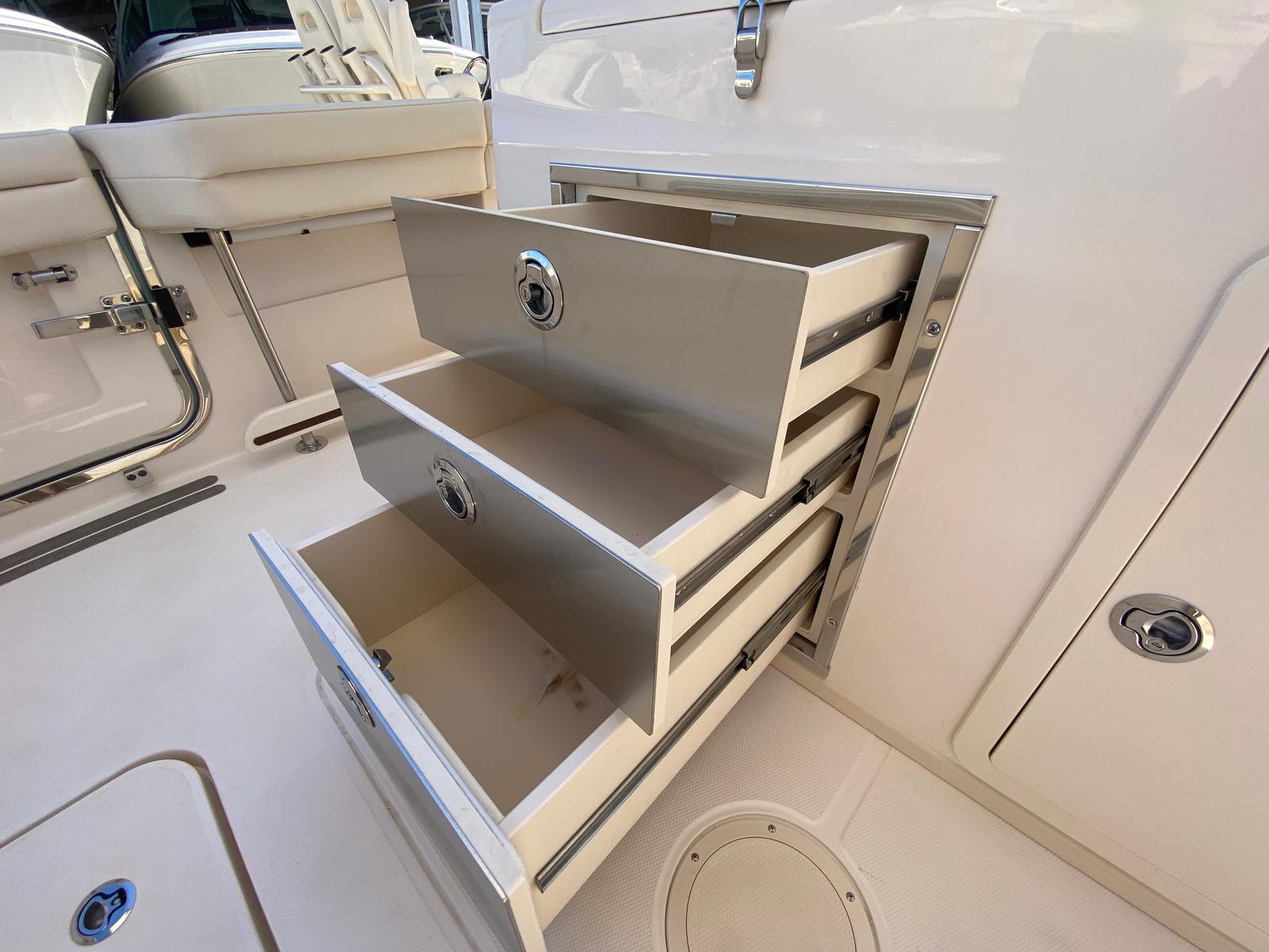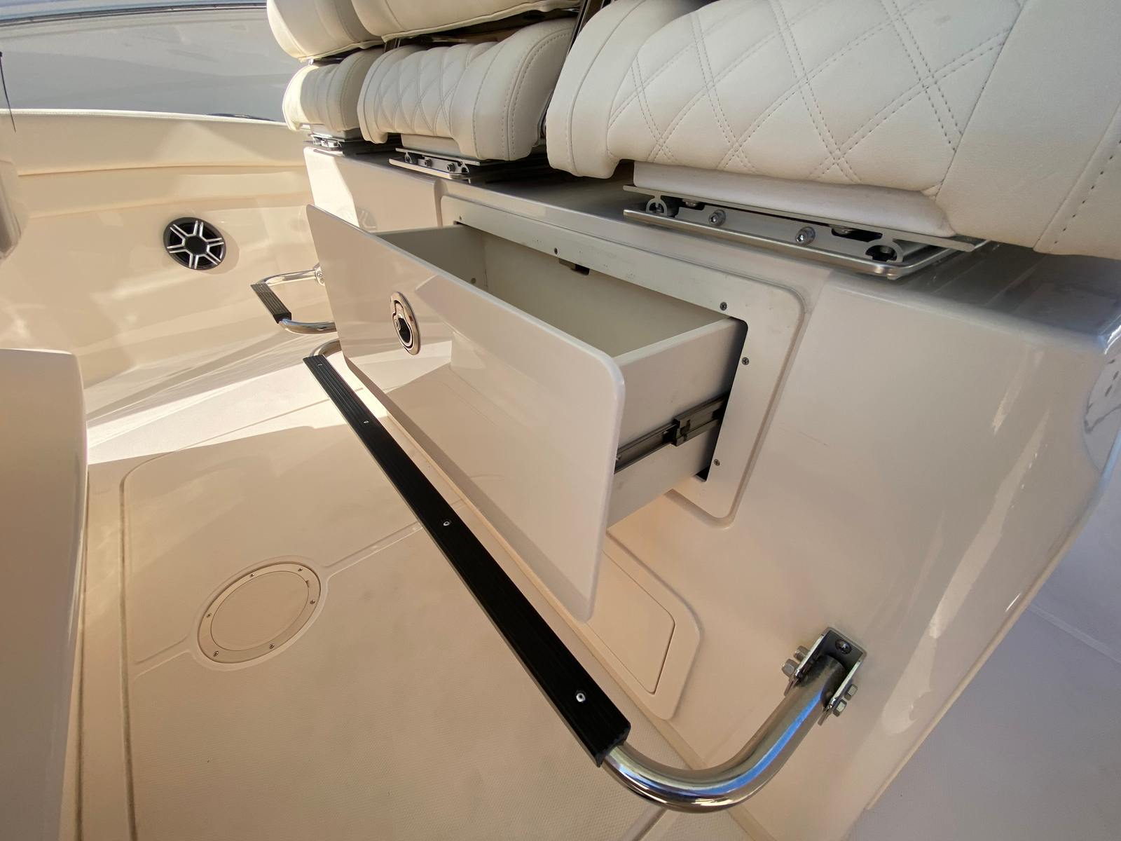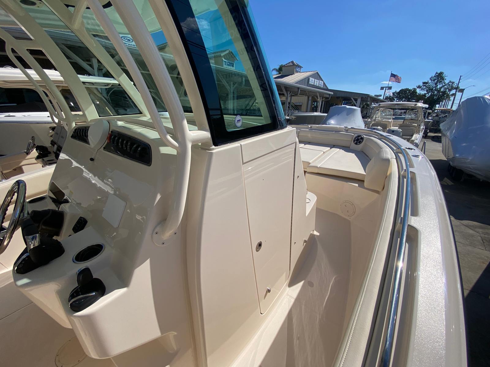 The Grady-White Canyon 326 shines in a variety of scenarios, making it a versatile choice for any boating enthusiast. For families, the generous seating and shade options provide a comfortable environment for day trips, swimming, and exploring new destinations. Anglers will appreciate the open deck space and easy access to all areas of the boat, making it simple to cast lines and reel in the catch of the day.If you love entertaining, the Canyon 326’s stylish design and premium features create the perfect setting for gatherings with friends. Imagine hosting sunset cruises, enjoying evening cocktails under the underwater lights, or relaxing in the shade after a day of water sports. This Center Console boat for sale is equally suited for luxury getaways, offering the performance and amenities needed for longer excursions or weekend escapes.