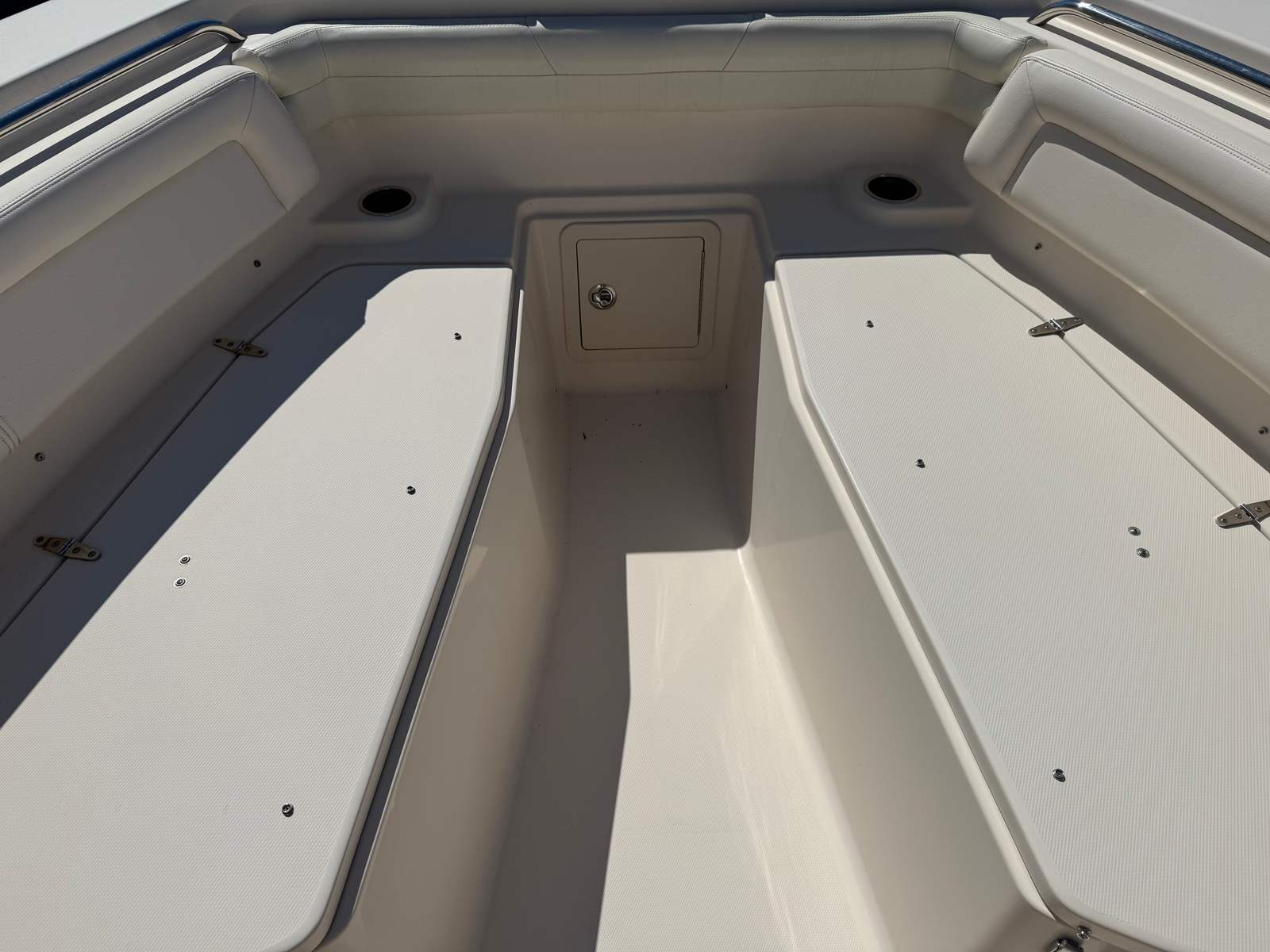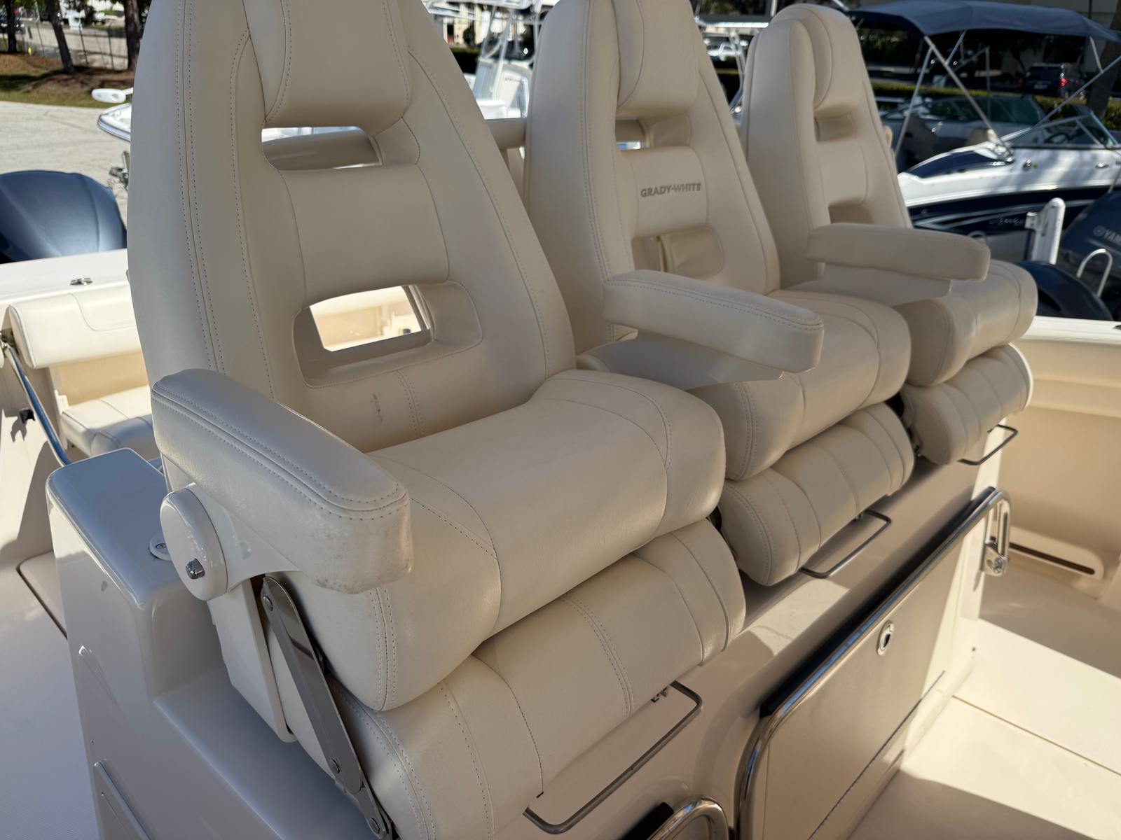 When it comes to performance, the 2018 Grady-White Canyon 336 truly excels. Powered by three robust engines delivering a combined 900 horsepower, this Center Console boat is built for speed, agility, and reliability. The triple-engine setup provides impressive acceleration and top-end speed, allowing you to reach your favorite fishing spots or cruising destinations quickly and efficiently.The advanced hull design ensures a smooth and stable ride, even in challenging offshore conditions. Whether you are navigating choppy waters or cruising along the coastline, the Canyon 336 offers exceptional handling and control. The powerful engines not only deliver exhilarating performance but also provide the confidence and peace of mind that come with owning a Grady-White boat for sale.