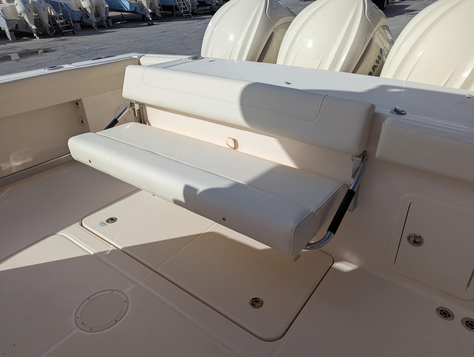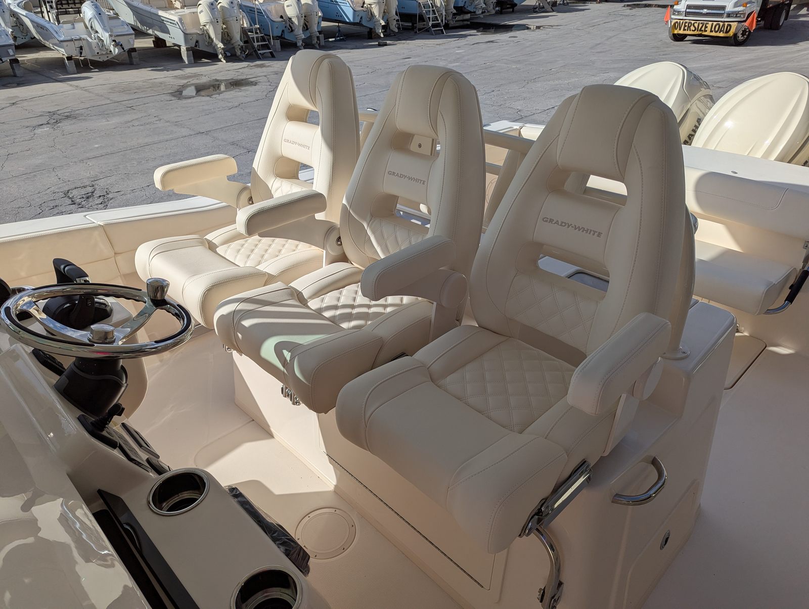 Power and precision are at the heart of the Grady-White Canyon 336. Outfitted with triple CW Yamaha F350 engines, this boat boasts a combined 1,050 horsepower, delivering exhilarating speed and agile handling for offshore adventures. The full maneuverability system ensures effortless docking, tight turns, and superior control in any sea condition. Whether you are chasing the horizon or navigating busy harbors, the Canyon 336’s performance pedigree guarantees a smooth, responsive ride every time you hit the water.