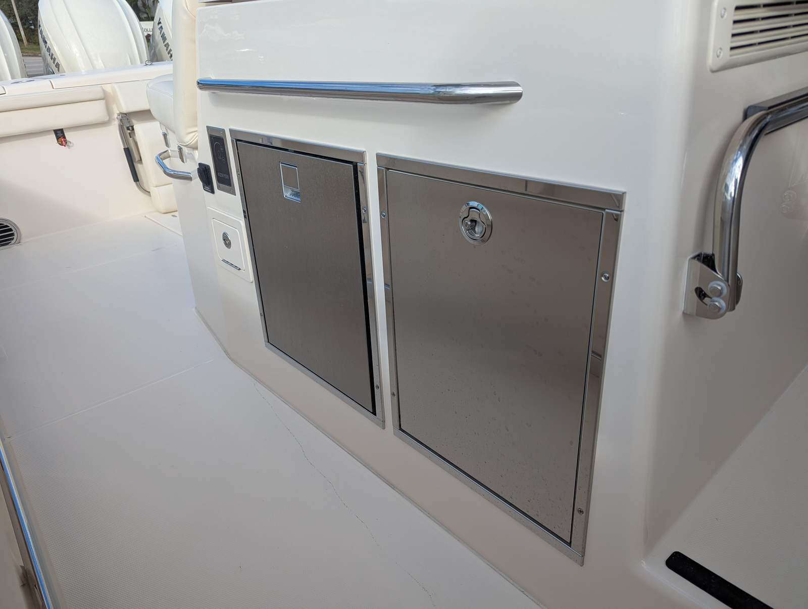 Power and precision are at the heart of the Grady-White Canyon 456. Equipped with four robust Yamaha XF450 engines, this Center Console boat delivers a combined 1800 horsepower, ensuring exhilarating speed and smooth handling in a variety of conditions. The prerig quad Yamaha XF450 setup provides seamless integration and optimal performance, allowing you to navigate offshore waters with confidence and control. Whether you’re chasing trophy fish or cruising along the coastline, the Canyon 456’s advanced propulsion system guarantees a responsive and thrilling ride every time.