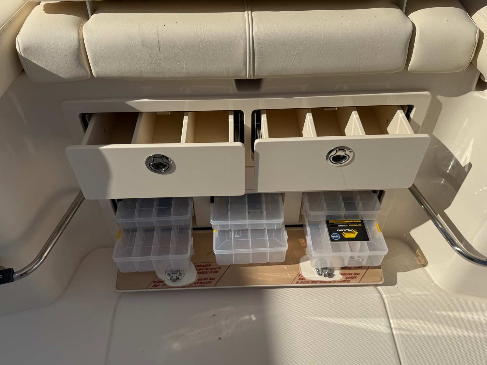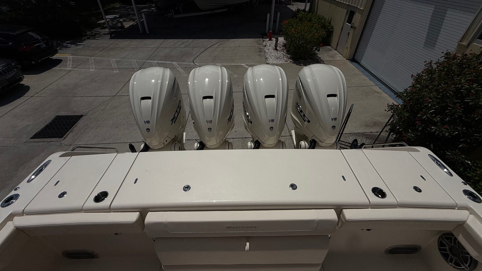 This Grady-White boat for sale is loaded with features that enhance both functionality and enjoyment on the water. The quad Yamaha XF450 engines are a testament to the boat’s commitment to power and reliability, while the Yamaha Prerig ensures that every system operates at peak efficiency. The Gel Coat in Coastal Fog Blue not only adds visual appeal but also provides a durable, easy-to-maintain finish. Outriggers are included for serious anglers who want to maximize their fishing spread and target a variety of species. The Jit Top Underside in Coastal Fog complements the overall aesthetic, creating a cohesive and stylish look that is sure to turn heads.