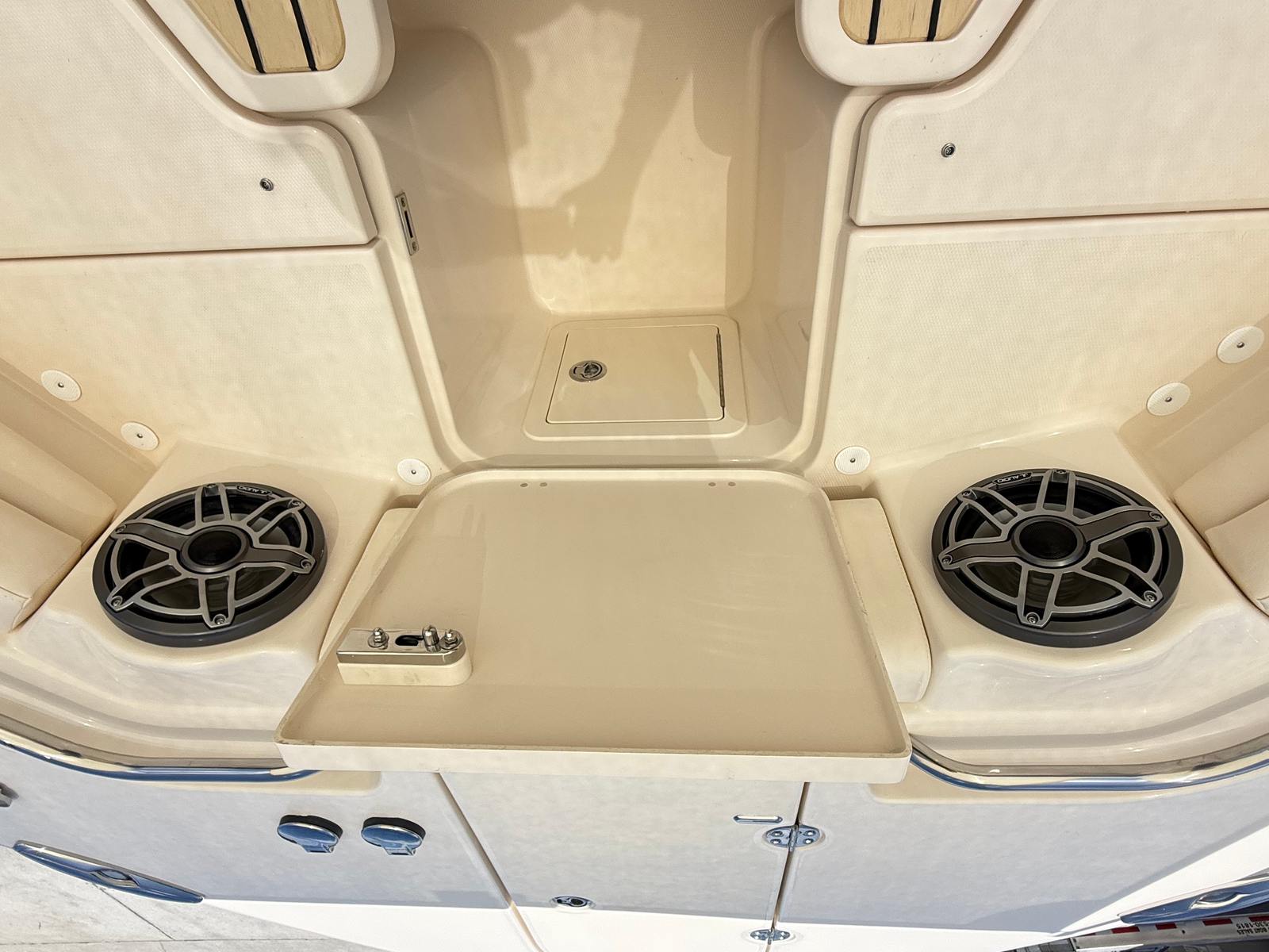 The Grady-White Canyon 456 is as practical as it is impressive. Its generous length and thoughtful design provide ample storage for gear, tackle, and personal items, keeping the deck clutter-free and organized. The center console layout makes docking and maneuvering straightforward, even in tight spaces, while the powerful quad engines offer responsive handling and quick acceleration. Fuel efficiency is enhanced by the advanced Yamaha outboards, allowing you to spend more time on the water and less time at the fuel dock. Whether you are planning a long-range fishing trip or a weekend getaway, this center console boat for sale is equipped to handle it all with ease.
