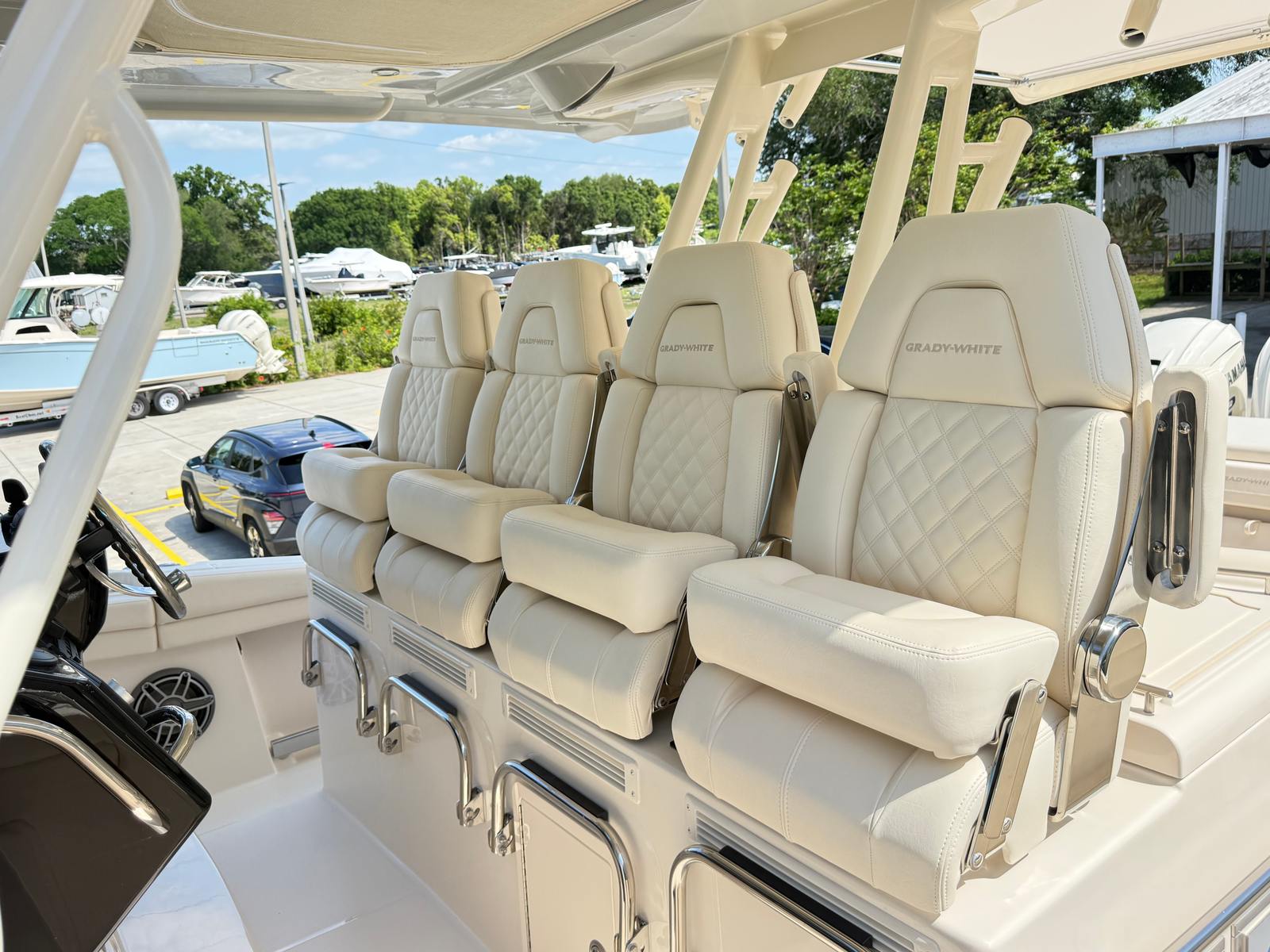 Power and precision define the performance of the Grady-White Canyon 456. Equipped with quad Yamaha XF450 engines, this center console boat boasts a combined 1800 horsepower, delivering exhilarating speed and smooth handling in a variety of sea conditions. The Yamaha Prerig ensures seamless integration and optimal performance, allowing you to harness the full potential of these powerful outboards. Whether you are heading offshore for a day of fishing or cruising along the coastline, the Canyon 456 provides the confidence and capability to tackle any adventure.