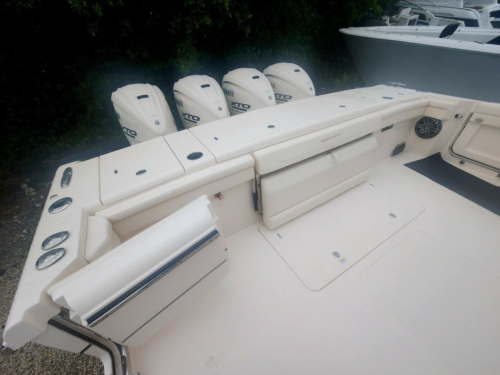 At the heart of the Grady-White Canyon 456 lies an extraordinary power package: four Yamaha XF450 engines, delivering a combined 1800 horsepower. This quad-engine setup provides exhilarating speed, smooth acceleration, and reliable performance, making it one of the most powerful center console boats on the market. The prerig quad Yamaha XF450 configuration ensures seamless integration and optimal efficiency, allowing you to cruise, fish, or explore with confidence. Whether you’re chasing the horizon or navigating coastal waters, the Canyon 456’s performance capabilities promise an unforgettable ride every time.
