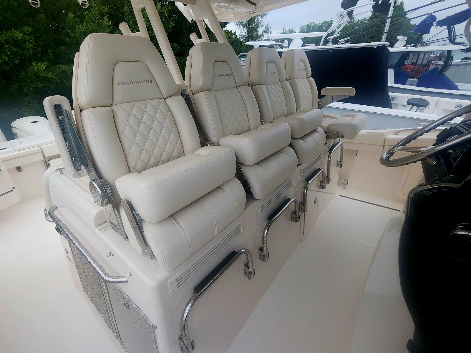 The versatility of the Grady-White Canyon 456 makes it the perfect choice for a wide range of boating activities. Imagine setting out with family and friends for a day of sun, sea, and laughter, with plenty of space for everyone to relax and enjoy the ride. For fishing enthusiasts, the Canyon 456’s advanced features and powerful engines make it a formidable offshore fishing platform, capable of tackling even the most challenging conditions. If luxury getaways are more your style, this center console boat offers the comfort and amenities needed for extended cruises, romantic escapes, or entertaining guests in style. No matter how you choose to spend your time on the water, the Grady-White Canyon 456 is designed to make every moment unforgettable.