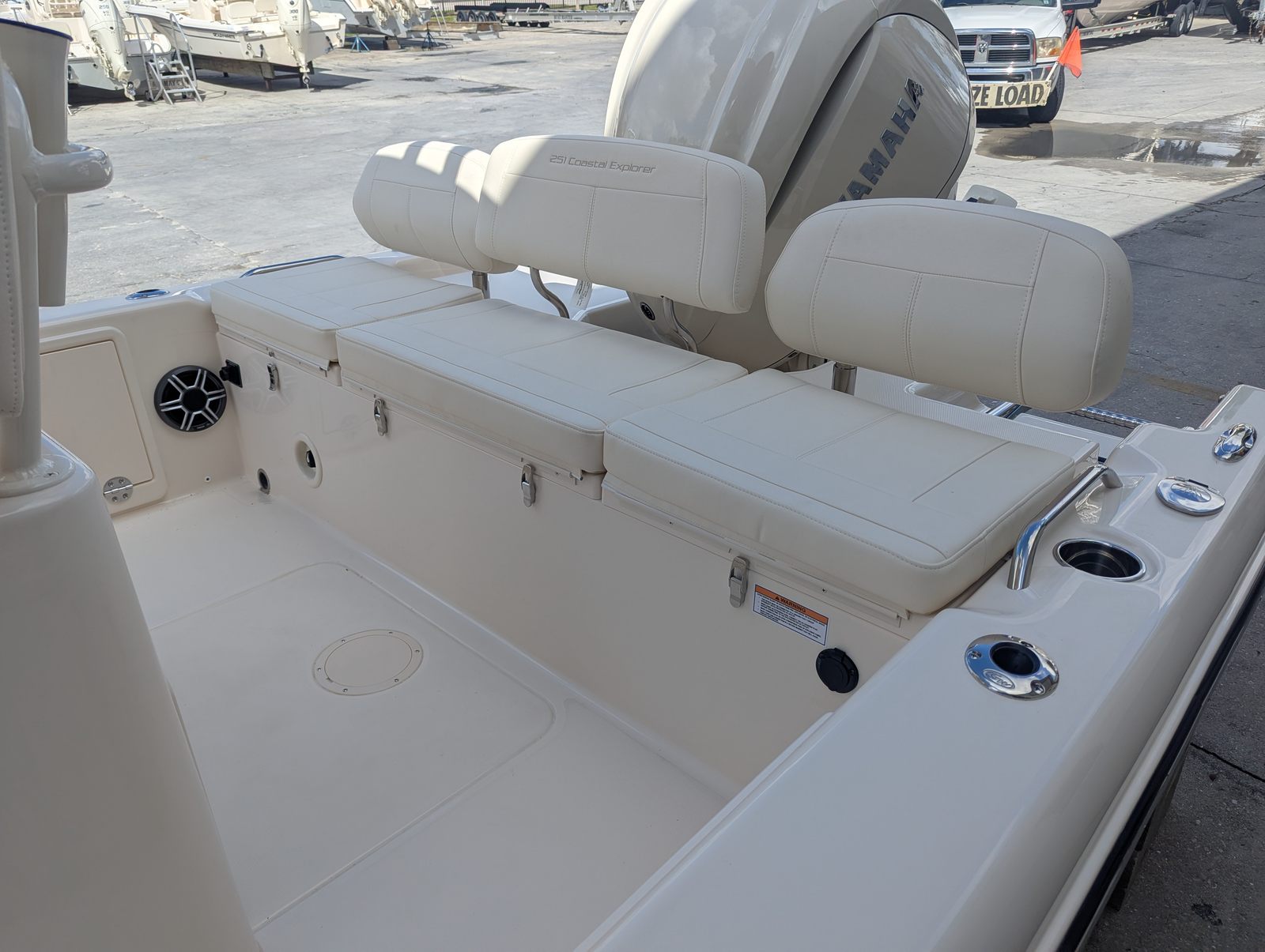 The Coastal Explorer 251 is designed with practicality in mind, offering features that make ownership and operation both enjoyable and hassle-free. The efficient Yamaha F300 engine delivers impressive fuel economy, allowing you to spend more time on the water and less time refueling. The boat’s manageable length of just over 24.5 feet makes it easy to dock, trailer, and store, providing flexibility for a variety of boating environments. The removable aft center backrest and bow table offer adaptable seating and storage options, ensuring you can make the most of every inch of space. The trolling motor prep package is ideal for anglers who want to maximize their fishing opportunities, while the ivory bow shade and Jit top underside white provide comfort and style for all-day enjoyment.