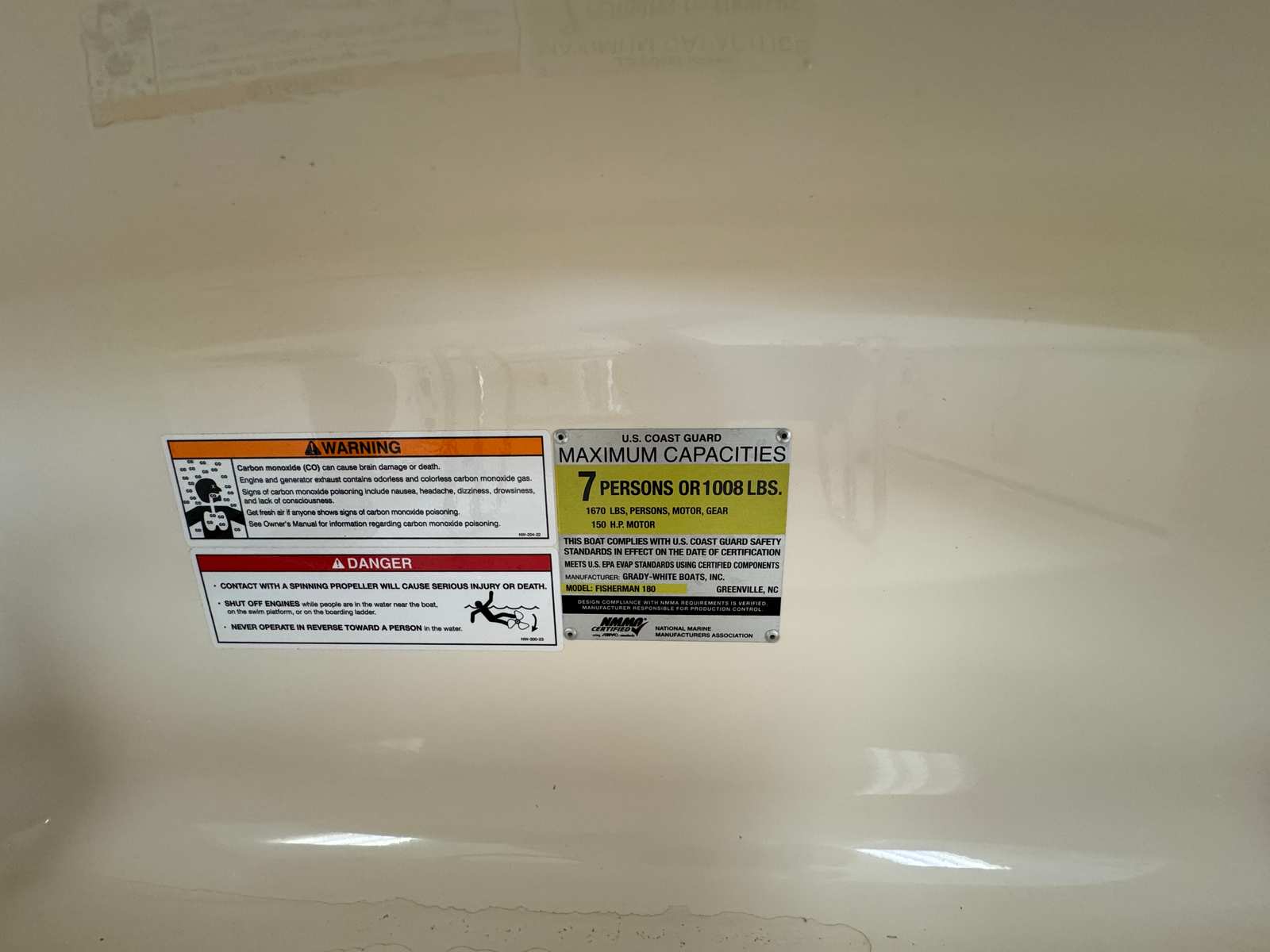 Powering the Fisherman 180 is a single Yamaha F150 DEC engine, delivering an impressive 150 horsepower. This engine is renowned for its reliability, smooth operation, and fuel efficiency, making it a favorite among boating enthusiasts. Whether you’re navigating coastal waters, heading offshore for a fishing adventure, or cruising along the shoreline, the Fisherman 180’s engine provides the power and agility you need for a thrilling ride. The combination of Grady-White’s hull design and Yamaha’s advanced engine technology ensures responsive handling, quick acceleration, and a stable ride even in choppy conditions.