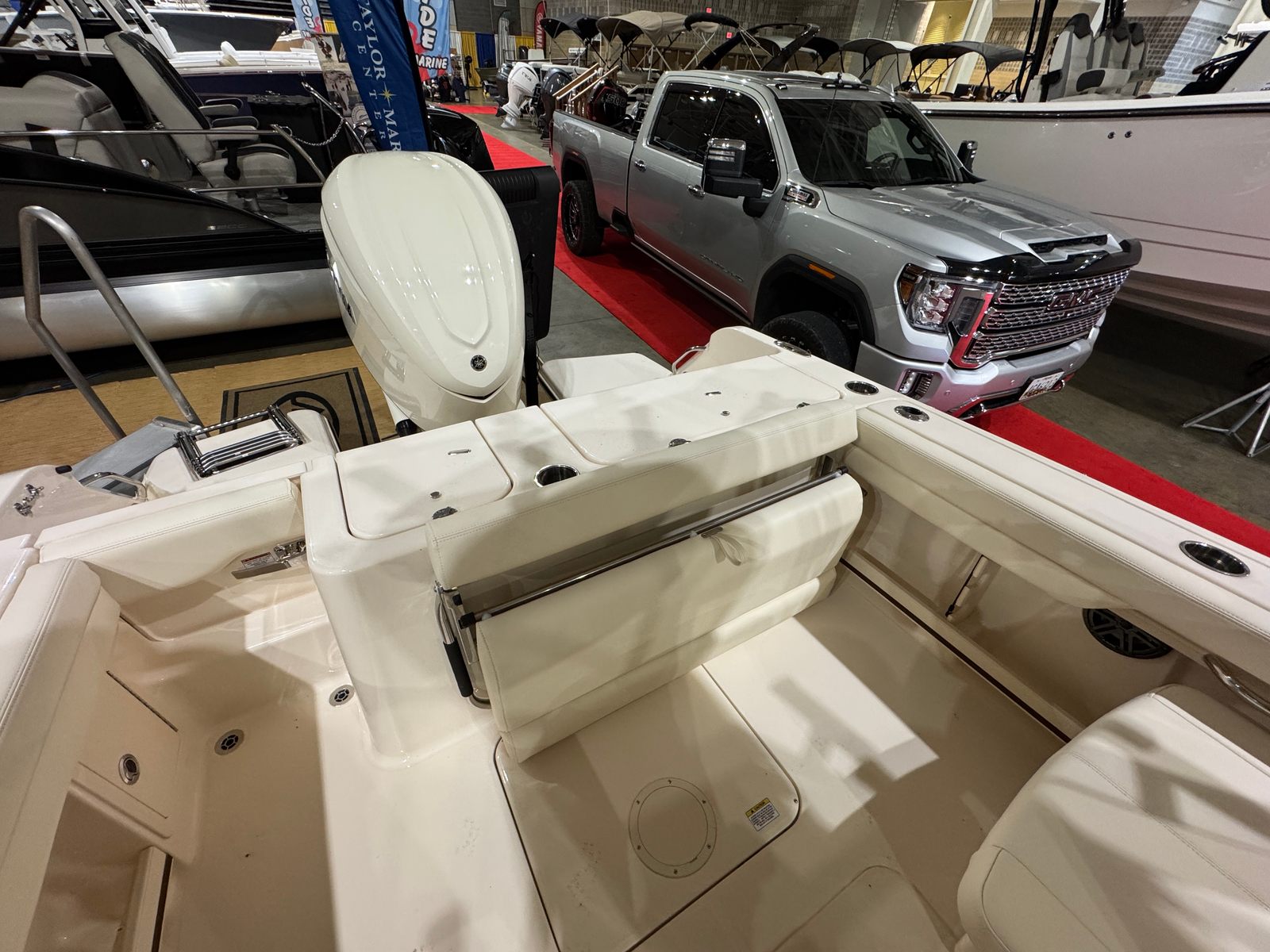 Painted Rod Holders: Enhances functionality and complements the boat’s elegant finish.