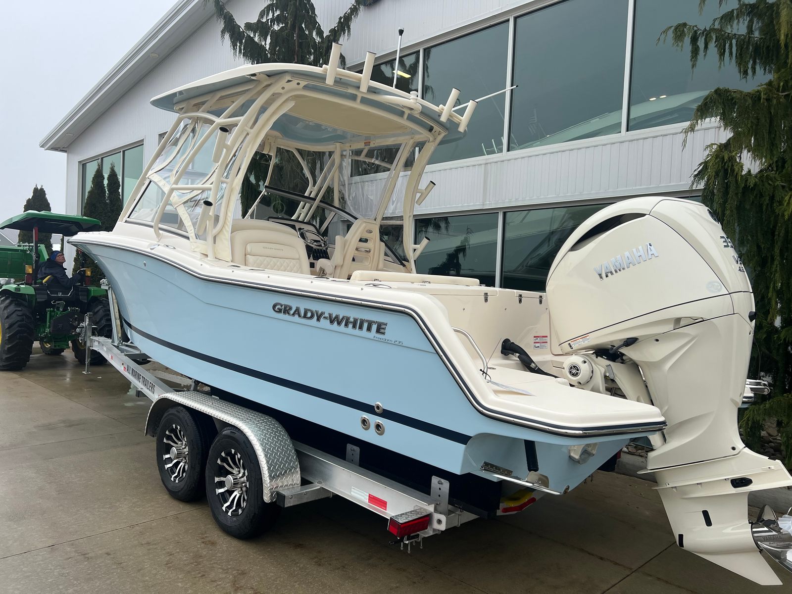 The 2026 Grady-White 235 Freedom is a new dual console boat that measures 25'7" in length, offering ample space for relaxation, entertainment, and adventure. As one of the most sought-after models in the Grady-White lineup, the 235 Freedom combines robust construction with elegant styling, making it a standout option for boaters seeking both functionality and comfort. This dual console boat for sale is currently on order, ensuring that you will be among the first to enjoy the latest advancements in marine engineering and design.