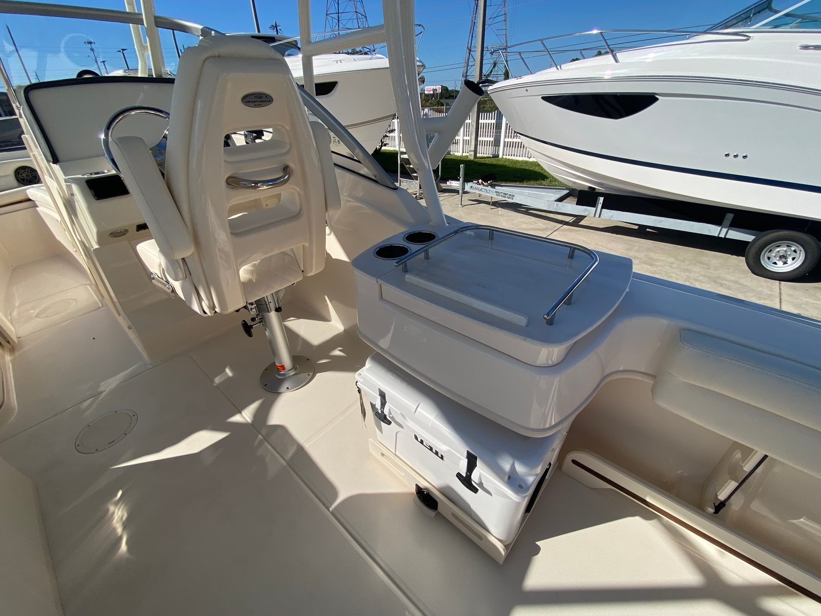 Owning the Grady-White Freedom 235 means embracing a lifestyle of fun, relaxation, and adventure. This dual console boat is designed with socializing in mind, offering plenty of seating and open space for gatherings with family and friends. The deluxe companion seat and sun platform invite you to unwind, while the side bar and sink make entertaining effortless. The thoughtfully designed layout ensures that everyone on board can enjoy the ride, whether you are cruising, swimming, or simply taking in the views.The Freedom 235’s advanced engineering and powerful Yamaha engine provide peace of mind, knowing you have the performance and reliability needed for any outing. The marine head with electric flush adds a touch of luxury, making extended trips more comfortable for everyone. With its striking appearance and premium features, this Grady-White boat for sale is sure to become the centerpiece of your boating adventures.