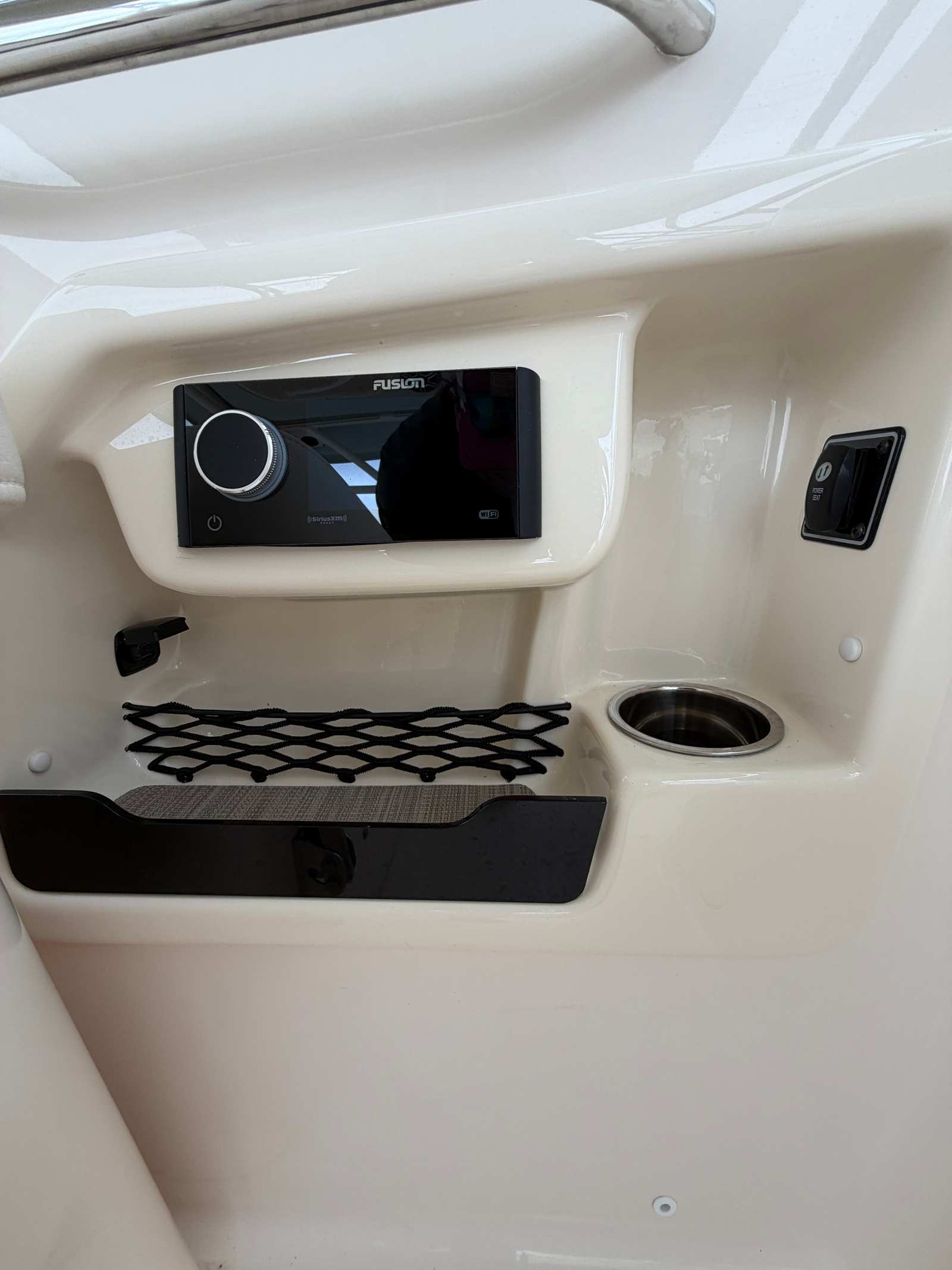 The Freedom 255 is designed with practicality in mind, making ownership easy and enjoyable. The dual engines simplify docking and maneuvering, while the Dockside Power & Battery Charger keeps your onboard systems running smoothly. The ample storage options, including the Deluxe Bar with Corian Sink & Storage, allow you to stow gear, snacks, and beverages for a full day of fun. The protective covers and curtains shield you from sun, wind, and rain, ensuring comfort in any conditions. With its versatile layout and thoughtful amenities, this Dual Console boat for sale is ideal for both short excursions and extended adventures.
