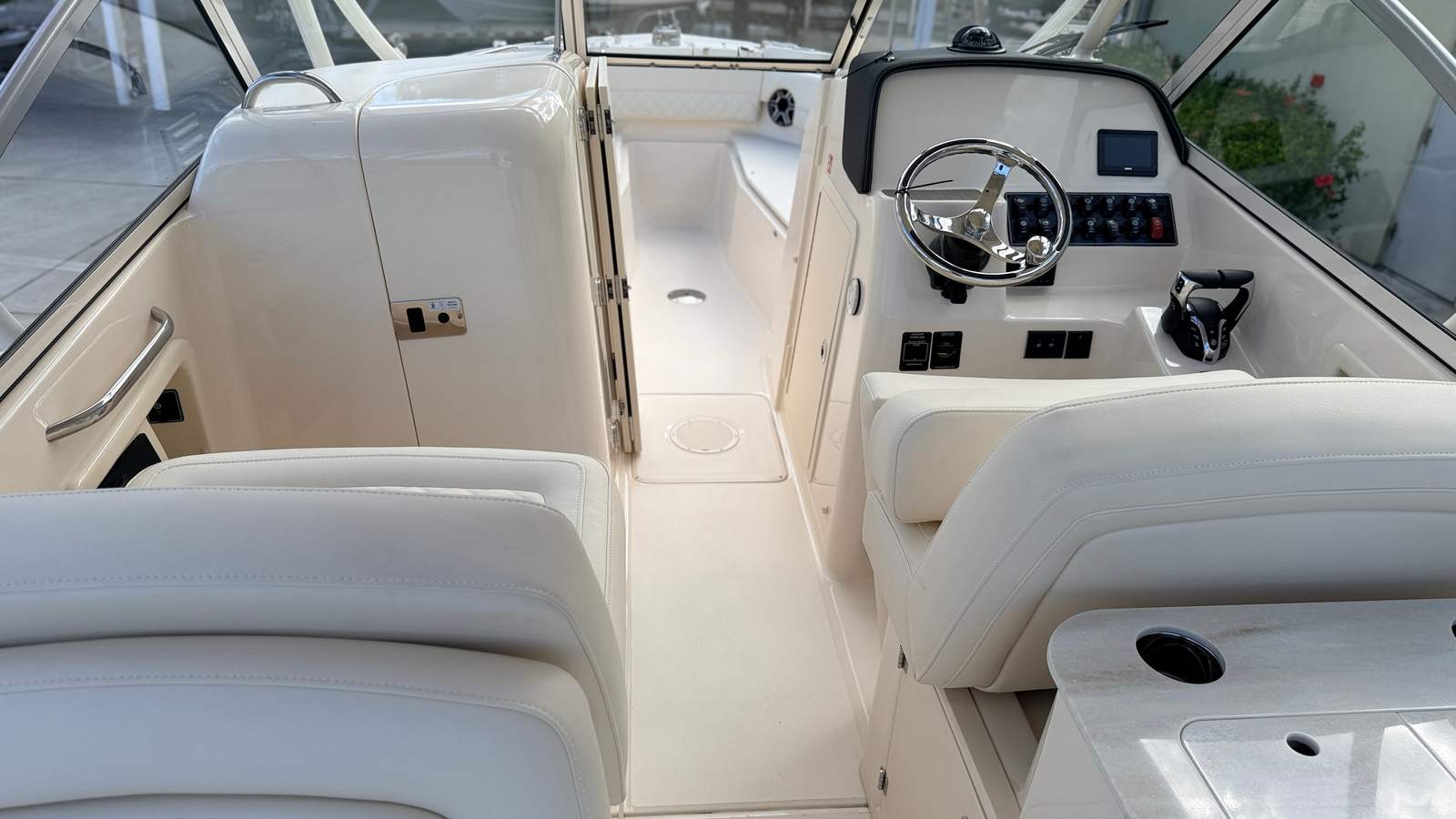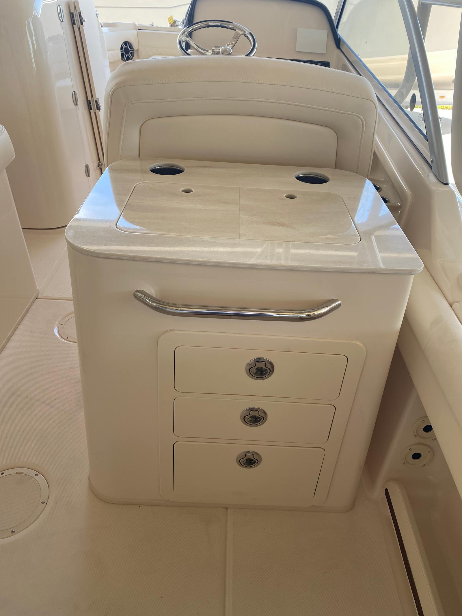 The Freedom 255 shines in a variety of scenarios, making it the ultimate choice for families, anglers, and boating enthusiasts alike. Picture a sunny weekend spent cruising with family, the kids enjoying snacks at the bow table while adults relax on the sun platform. Imagine hosting friends for an evening cocktail hour, with the deluxe bar and Corian sink making entertaining effortless.For fishing enthusiasts, the spacious layout and powerful engines provide the perfect platform for a successful day on the water. The dual console design offers protection from the elements, ensuring comfort during early morning outings or unexpected weather changes. Whether you are planning a luxury getaway, a day of water sports, or a relaxing escape, the Grady-White Freedom 255 adapts to your every need.