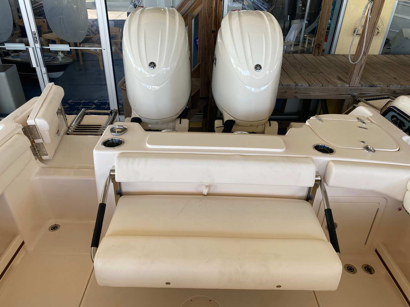 The Grady-White Freedom 255 is engineered for convenience and ease of ownership. The cockpit step and thoughtful layout make boarding and moving around the boat simple and safe for guests of all ages. The ample storage options, including dedicated spaces in the deluxe bar, ensure your gear, snacks, and essentials are always within reach and neatly organized.Docking and maneuvering are made effortless thanks to the responsive twin Yamaha engines, allowing you to navigate tight spaces with confidence. The fuel-efficient design means you can spend more time on the water and less time refueling, maximizing your enjoyment and minimizing downtime. Protective covers for the bow and aft sections help preserve the boat’s pristine condition, reducing maintenance and ensuring your investment stays looking its best.
