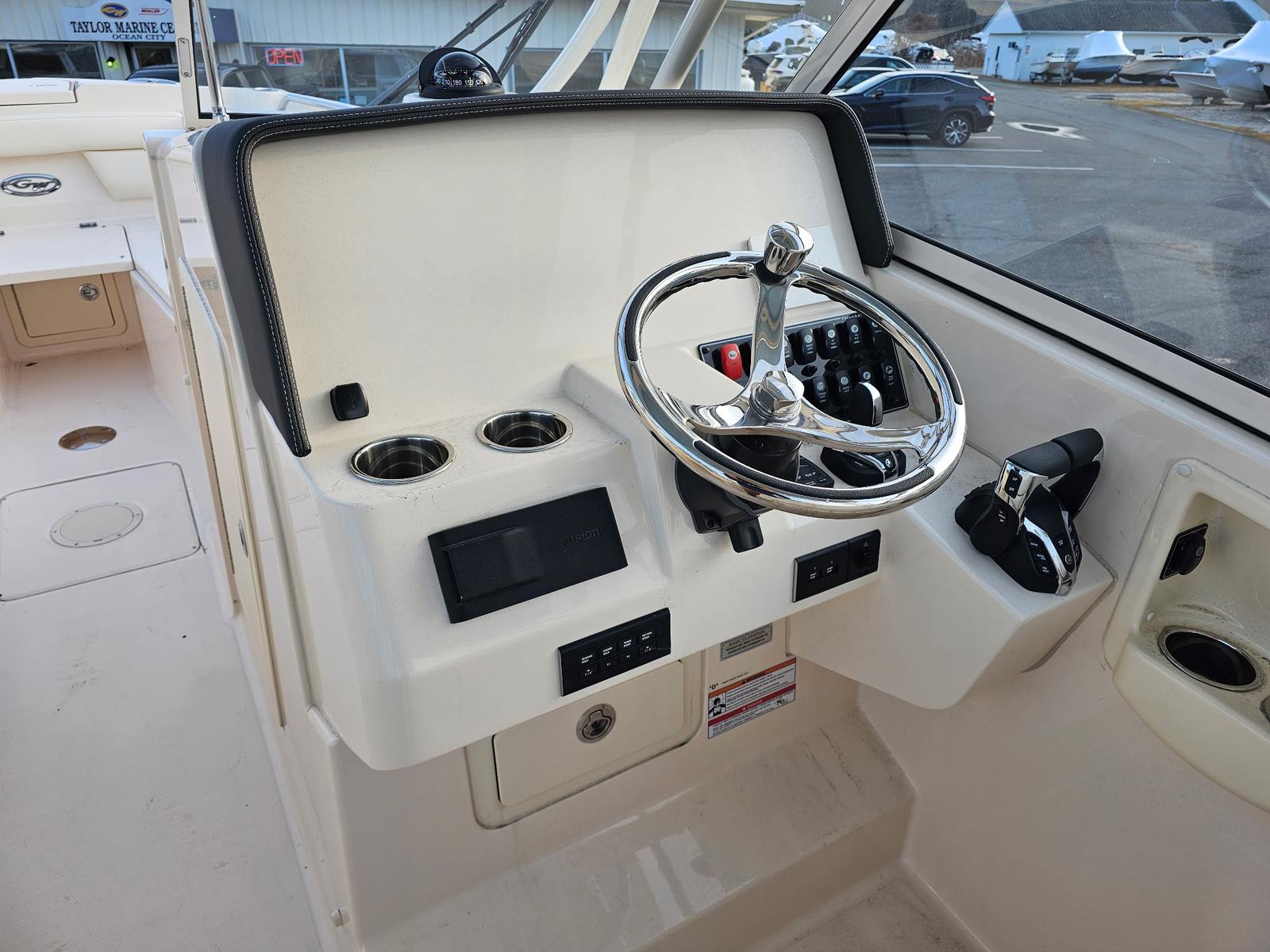 The Grady-White Freedom 285 is engineered for ease of ownership and maximum enjoyment. Its dual console configuration offers versatile storage solutions, keeping your equipment organized and accessible. Docking is simplified by the boat’s responsive handling and well-designed layout, making it easy to maneuver in tight spaces or busy marinas.Fuel efficiency is enhanced by the advanced hull design and powerful twin engines, allowing you to spend more time on the water and less time refueling. The protective covers help maintain the boat’s pristine condition, shielding it from the elements when not in use. Whether you’re planning a quick day trip or an extended adventure, the Freedom 285 is equipped to handle all your boating needs with style and reliability.