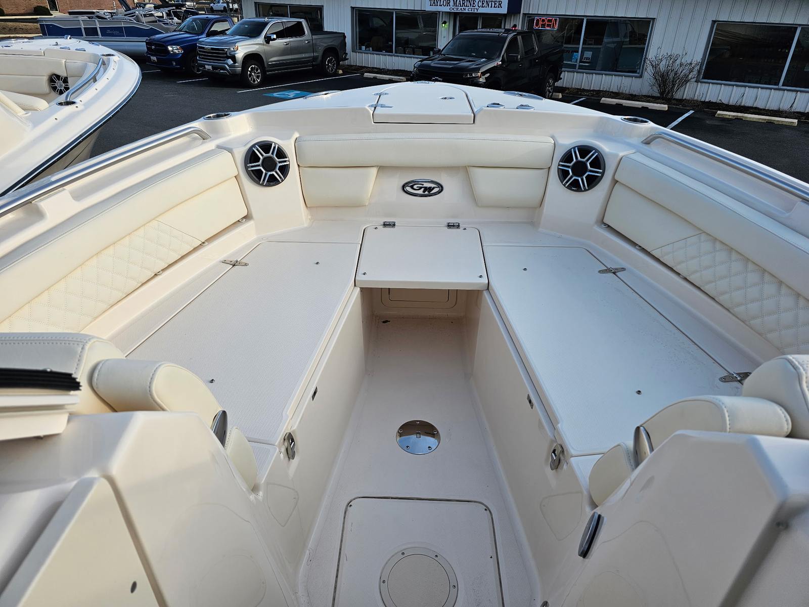 The Grady-White Freedom 285 is loaded with special features that set it apart from other boats in its category. The Sun Platform Insert with Cushion offers a comfortable space for sunbathing or relaxing, while the Side Bar with Corian and Sink adds a touch of elegance and convenience for entertaining guests. The refrigerator, available with the Side Bar, ensures your refreshments stay cool throughout your journey.Aesthetics are elevated with the Celestial Blue hull color and matching Hard Top Underside, creating a cohesive and striking appearance. The Ivory Aft Tonneau Cover and Ivory Bow Cover provide protection and style, while the Electric Sure Shade Top in Oyster offers adjustable shade for maximum comfort. Under Water Lights add a dramatic effect for evening cruises, enhancing both safety and ambiance. These features combine to create a luxurious and functional environment, making the Freedom 285 a standout Grady-White boat for sale.